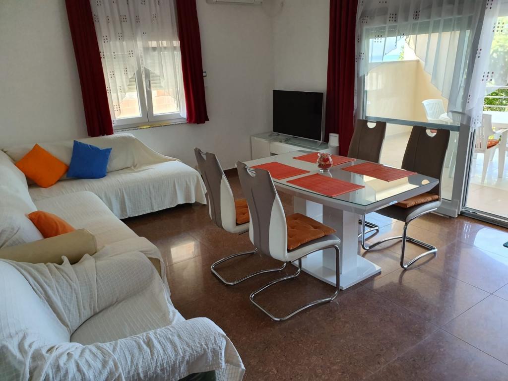 Smukt indrettet lejlighed, rummelig, pæn, ren, perfekt udstyret køkken med alt udstyr, to køleskabe med fryser, myggenet i vinduerne og på altandørene, rummelig terrasse med nye møbler og gynge. Alt som i lejlighedsbeskrivelsen. Grønne omgivelser omkring huset, liggestole, stranden ligger lige foran huset, i nærheden er der også en sandstrand til små børn, smukke solnedgange. Gæstfrie ejere. Roligt område i Zaton. Jeg kan anbefale!