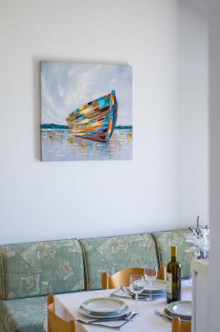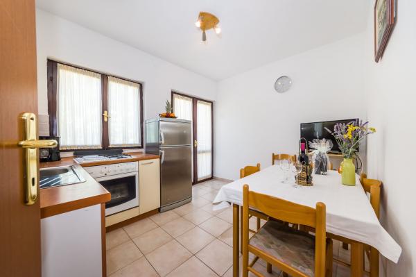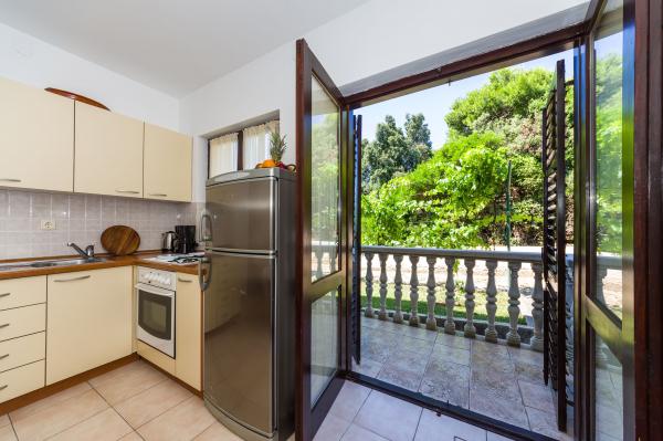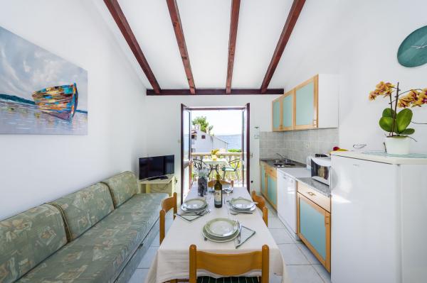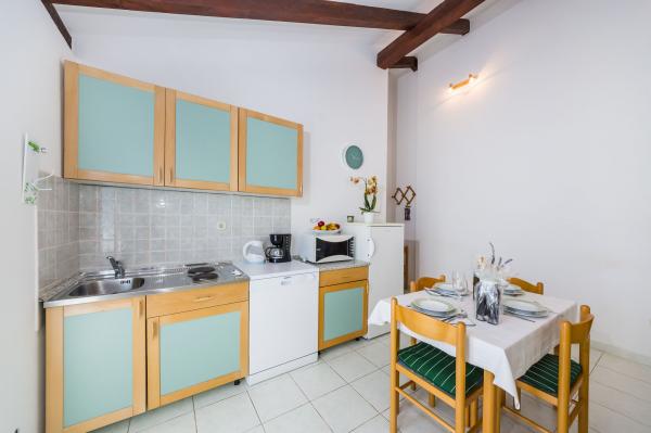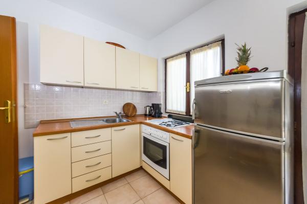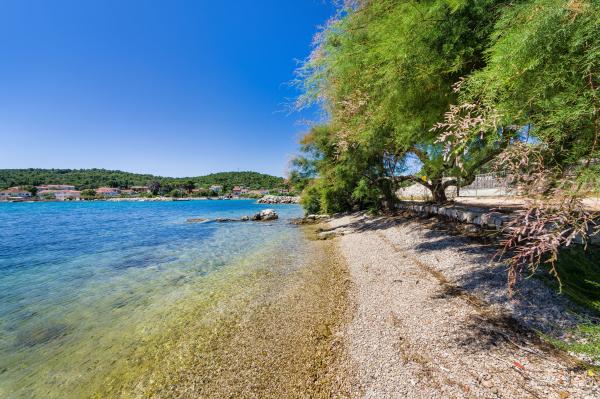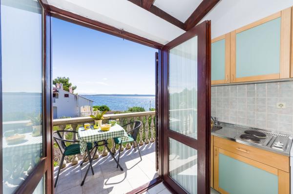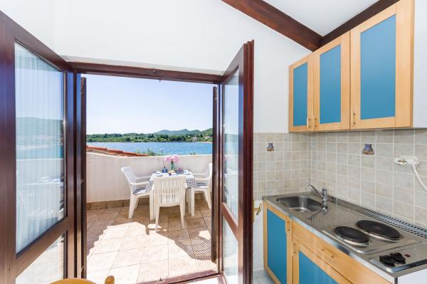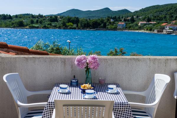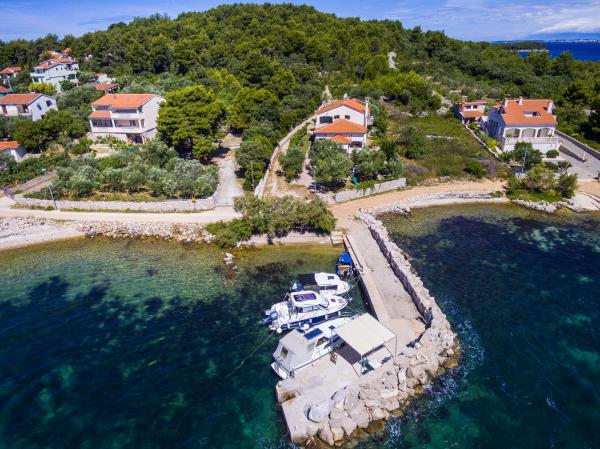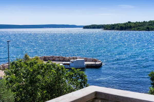 Fuldt udstyrede lejligheder, aircondition, satellit-tv, internet, ..... Beliggende i en stille bugt, FØRSTE RÆKKE TIL HAVET. I gården er der grill med stor terrasse til hyggelige familiesammenkomster. Gården er velegnet til børn, med rutsjebane og gynge. . Der tilbydes parkering i gården. , Foran huset er der en strand, velegnet til små børn Fra gården er du direkte på stranden. Stranden er med små sten og har naturlig skygge. Den anden strand, som er delvist sandet, ligger 150 m. Foran bygningen er der en havnefront (mole), så det er muligt at bruge en kaj til en lille båd Mindre butikker og caféer ligger 150 m væk Restaurant. med fiskespecialiteter er 300 m væk.. Til bymidten skal du 15 minutters let gåtur, hvor der er restaurant, konditori, marked, marked, posthus..... VELKOMMEN!!