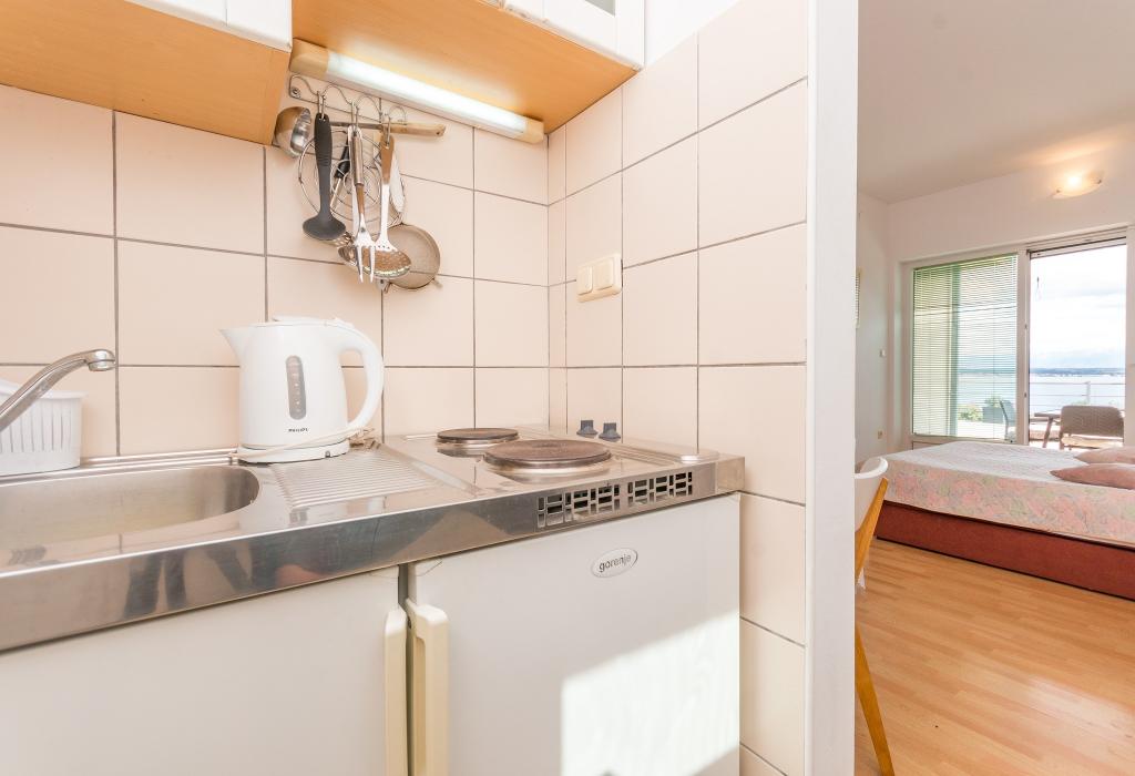 Fuldt og moderne udstyrede lejligheder i en lille by, beliggende lige ved havet. Vi er det sidste hus ved havet i den lille landsby Banj på øen Pašman. Vi ligger omkring 200 m fra bymidten (butikker, caféer, restauranter og den lokale strand) langs havet. Beliggende på en rummelig grund (ca. 1600 m2). Sikker parkering. Foran huset er der en anlagt græsplæne med et lysthus. Pavillonen har følgende faciliteter: grill, 2 elektriske kogeplader, køleskab, vask, køkken- og spiseudstyr, bord og bænke til at sidde på. Lysthuset er til fri afbenyttelse for gæster efter aftale med værten. Alt vender ud mod havet. Ejendommen er forbundet med en velholdt strand (skygge, liggestole, bænke, bruser). Særligt velegnet til familier med små børn og til alle, der ønsker ro og afslapning.