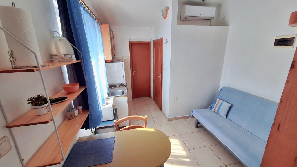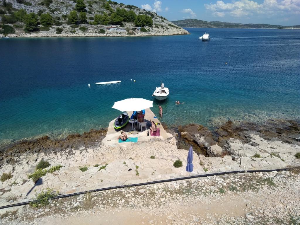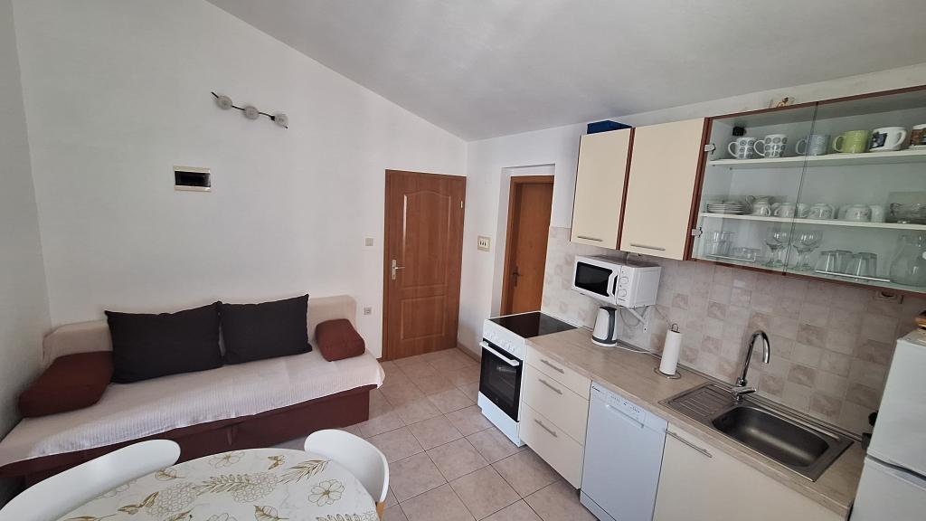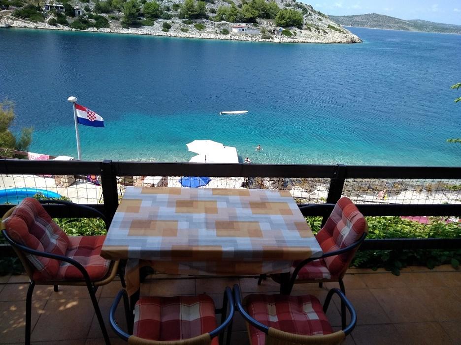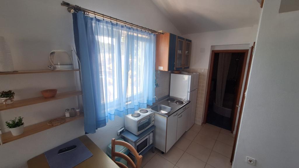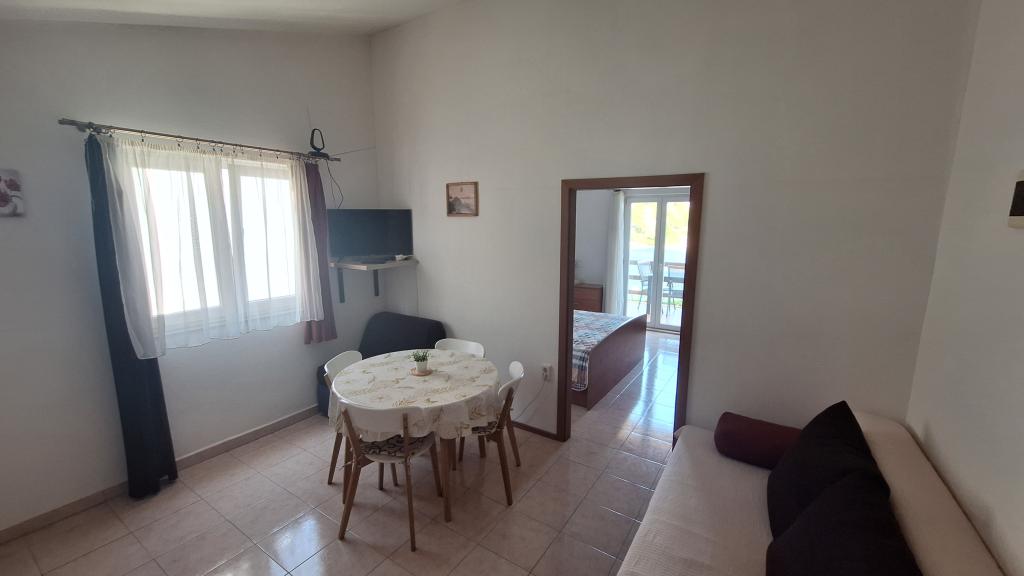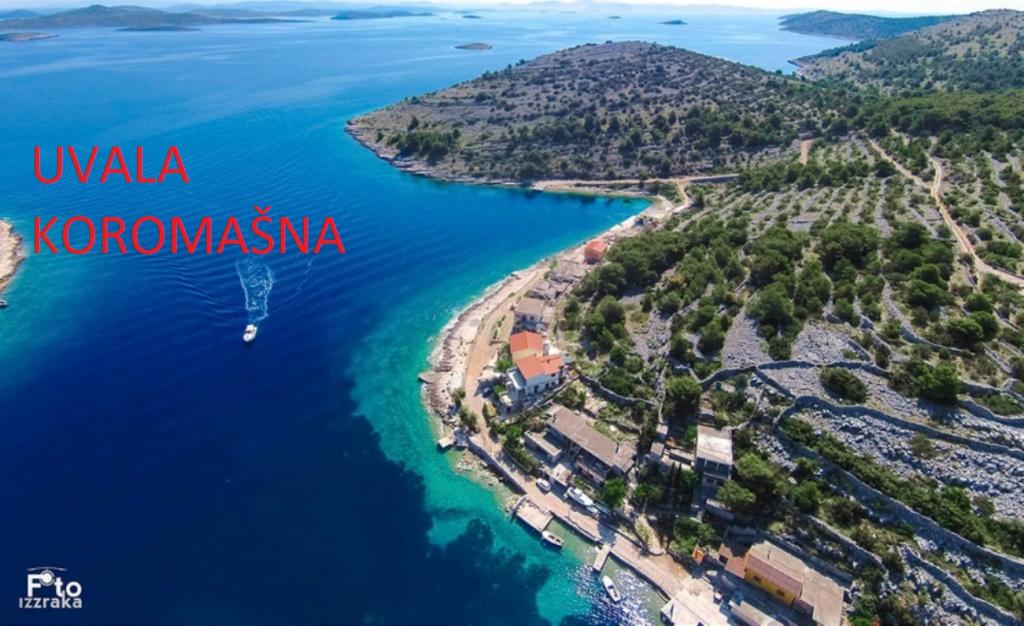 Begge lejligheder ligger på øverste etage i den rolige Koromašna-bugt, stranden ligger foran huset. Fordelen ved disse lejligheder er, at du kan se havet fra din seng. Der er en grill til rådighed for gæsterne. Begge lejligheder har aircondition og wifi, som er gratis. Parkering er foran huset og er også gratis. Turistskat er inkluderet i prisen. For enden af bugten er der en lille restaurant.