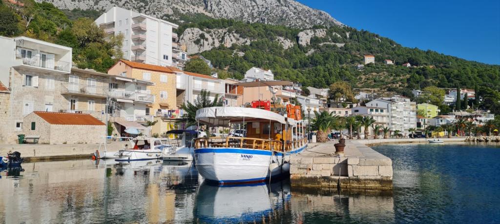 Živogošće ligger i den sydlige del af Makarska-rivieraen ved foden af Biokovo. Den består af tre mindre, usammenhængende steder på kysten: Porat - Mala Duba - Blato. Živogošće har været beboet siden den illyriske og romerske tid, som det fremgår af illyriske høje / grave / på toppen af bakken Suzina og resterne af rustikke villaer i Mala Duba og Blato. Den naturlige skønhed af olivenlunde og fyrreskove, som tårner sig op over fine stenstrande, 6 km indbyrdes forbundne strande, rent og uforurenet hav, alt sammen beliggende ved foden af et højt bjerg, Sutvid-top 1155 m, giver turister en særlig atmosfære og fornøjelse . Vi tilbyder overnatning i en rummelig lejlighed for 4 + 2 personer beliggende i et familiestenhus i dalmatisk stil, første række til havet. Lejligheden er i to etager og består af to soveværelser, to badeværelser, stue med køkken og rummelig altan. Lejlighedens samlede areal er 90 m2. Lejligheden har en uforglemmelig udsigt over havet og de omkringliggende øer, aircondition, internet, tv og sikret parkeringsplads.