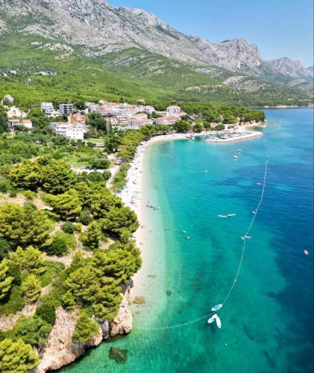 Apartments Dullina ligger kun 50 meter fra stranden i den charmerende dalmatiske by Živogošće Blato, som ligger 20 minutters kørsel fra byen Makarska. Dette rolige og ryddelige sted er ideelt for turister, der leder efter afslapning ved havet og nyde den naturlige skønhed. Stedet byder på tilstrækkelige faciliteter for turister, herunder restauranter, caféer og butikker, hvilket gør det perfekt til familier med børn, par eller enkeltpersoner. Strandene er rene og ryddelige, ligesom det krystalklare hav. Turistbåde tillader endagsture til øerne Korčula, Hvar og Brač, hvilket beriger opholdet med yderligere eventyr. Vi er også tæt nok på Neretva-dalen, hvor du også kan nyde skønheden ved Neretva-floden eller måske vandre til Biokovo-bjerget, hvorunder vores lille sted ligger. Hvile er helt sikkert garanteret.