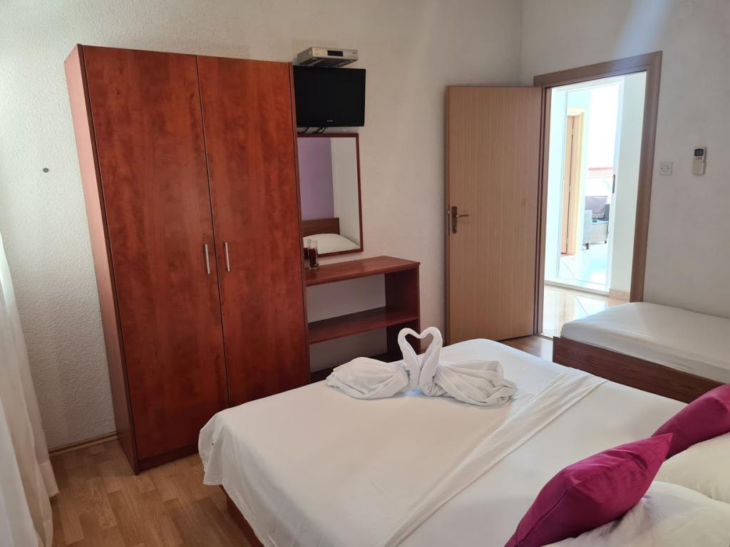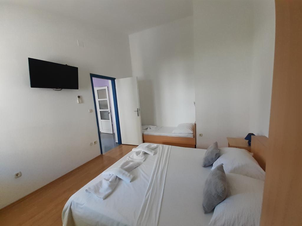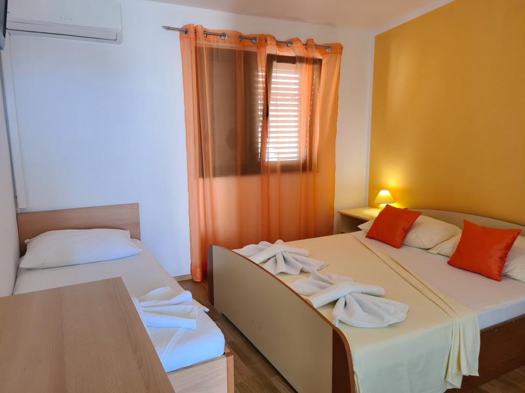 Indkvartering kan stærkt anbefales. Ved ankomsten arbejder hele familien. Søn og barnebarn ... hjælper dig med at få ting ud af bilen. Vi havde en lejlighed på tredje sal - to soveværelser, aircondition og to køkkener. Den ene på den fælles terrasse, som også bruges som et opholdsstue. Med hensyn til renlighed. Jeg fandt ikke et sådant niveau i et femstjernet hotel ... Det kunne bogstaveligt talt blive spist fra jorden ... Hver tredje dag skiftes håndklæder og til vores ophold og skift sengelinned .. hvilket også er udlejning af lejligheder. tjeneste. Og spar plads i bagagerummet .. eller bare en badehåndklæde ... Alt i form af indkvartering alene kan jeg stærkt anbefale. Den eneste for hvem den ikke passer, er mennesker, der er handicappede ... fordi der er mange trapper ... Men for os, selv med en klapvogn, var der ikke noget problem (du kan lade din klapvogn i jorden garage). Hvis du er på udkig efter indkvartering af fru Eva ... går du absolut ikke ved siden af ... Blato selv er et mere støjsvagt sted ... Men det er ikke helt dødt. To restauranter lige ved stranden .. Bar Masline for folk der ønsker at drikke efter 23h .. når der virkelig er alt sover ... To steder til en barneseng ... Et mindre marked for det nødvendige køb ... Så for mig - lejlighederne er hjemme med fuldstændig tilfredshed og ...