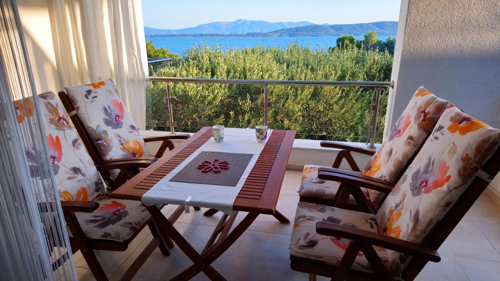 Vi tilbragte 8 nætter i denne lejlighed, alt var rent, udstyret var fremragende, alt var nyt. Der er aircondition på værelset, en ekstra ventilator i soveværelset og på terrassen. Lejligheden var meget rummelig med en smuk udsigt over oliventræet til havet. Selvom huset ligger lige ud til hovedvejen, blev der ikke hørt biler om natten. Ejerne er meget søde og villige til at hjælpe med noget, altid smilende. Vender gerne tilbage her i fremtiden.