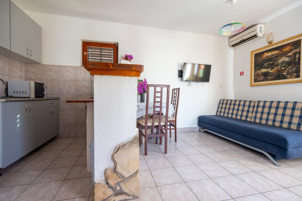 Blot 50 meter fra stranden i et fredeligt område i Blato i Zivogosce, Ferielejligheder Juran tilbyder 5 airconditionerede suiter med separat indgang. Alle lejligheder har et veludstyret køkken og badeværelse med bruser. To-værelses og et-værelses lejligheder har en møbleret terrasse. Der er fælles grill i haven. Hver lejlighed har adgang til en gratis parkeringsplads lige ved siden af anlægget. I nogle lejligheder er der en mulighed for en eller flere personer end annonceret kapacitet og ekstra gebyr. Ferielejligheder Juran er venner af dyr. Vi modtager kæledyr uden ekstra beregning. Wi-Fi er ubegrænset og gratis. Professionel shiatsu massage og leje både er tilgængelige på anmodning i anlægget. Vi er fortsat på din tjeneste.
