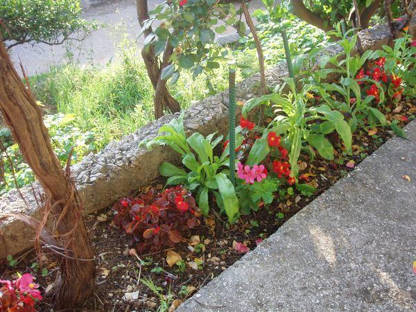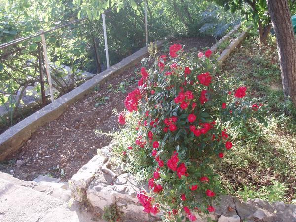 Huset har en have med vinstokke, med citrusfrugter og blomster, som giver naturlig skygge.