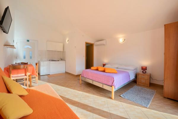 Apartments Slavica i Luka på Dugi otok er nye, moderne indrettede og rummelige studielejligheder (30-35m2 plus balkon). De er velegnede til 2-3 personer, eller til 2 personer med 1-2 børn. Hver lejlighed har en dobbeltseng og en ekstra seng - en sovesofa 135x200cm. . Kun 100 m fra centrum, butikker, cafeer, 150 m til nærmeste strand. Fred, ro, krystalklart hav, strande i uberørt natur. AIRCONDITION: Aircondition i hver lejlighed. INTERNET: Gratis WI-FI. Biladgang til huset er sikret, og parkeringspladsen er omkring 150 m væk, gratis offentlig parkering ved kysten, i havnen. Hunde er ikke tilladt.