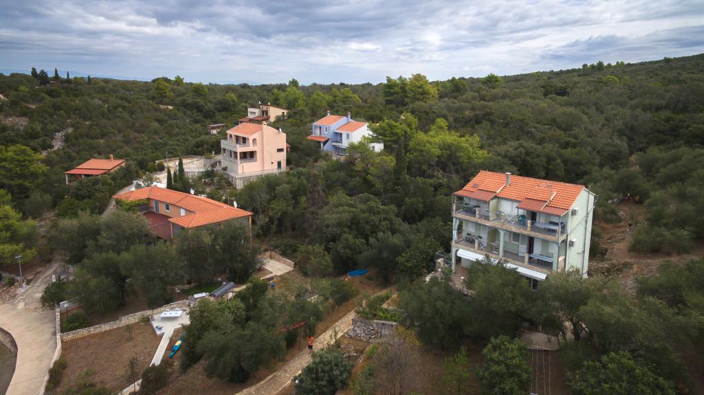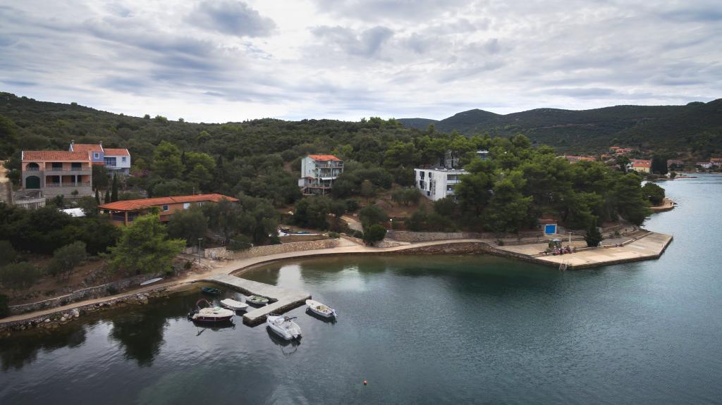 Lejligheden er beliggende første række til havet, dvs. i umiddelbar nærhed af stranden (ca. 50 meter). Stranden er en kombination af sand (velegnet til ældre og børn) og beton (velegnet til voksne). Der er en kaffebar i umiddelbar nærhed af boligen, og butikken kan nås på 5 minutter med en afslappet gåtur langs havet. Butikken er åben fra 8.00 til 12.00 og fra 17.30 til 20.00 og holder lukket på helligdage. Boligen kan nås ad landevej langs havet eller ad en vej, der ikke er asfalteret, den såkaldte hvide vej, makadam. Tommy butik (mad, husholdningsartikler), apotek, hæveautomater (ATM, ERSTE, PRIVREDNA BANKA) og posthus ligger i Sali, som ligger cirka 9 km væk. Færgehavnen ligger cirka 20 km væk og ligger i Brbinj. Der er tre restauranter i Luka, hvor du kan spise. Hæveautomater er placeret på følgende steder: Zaglav, Sali og Brbinj.