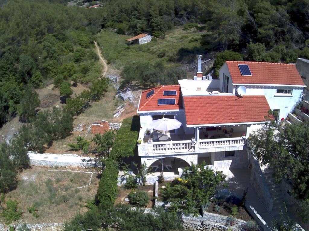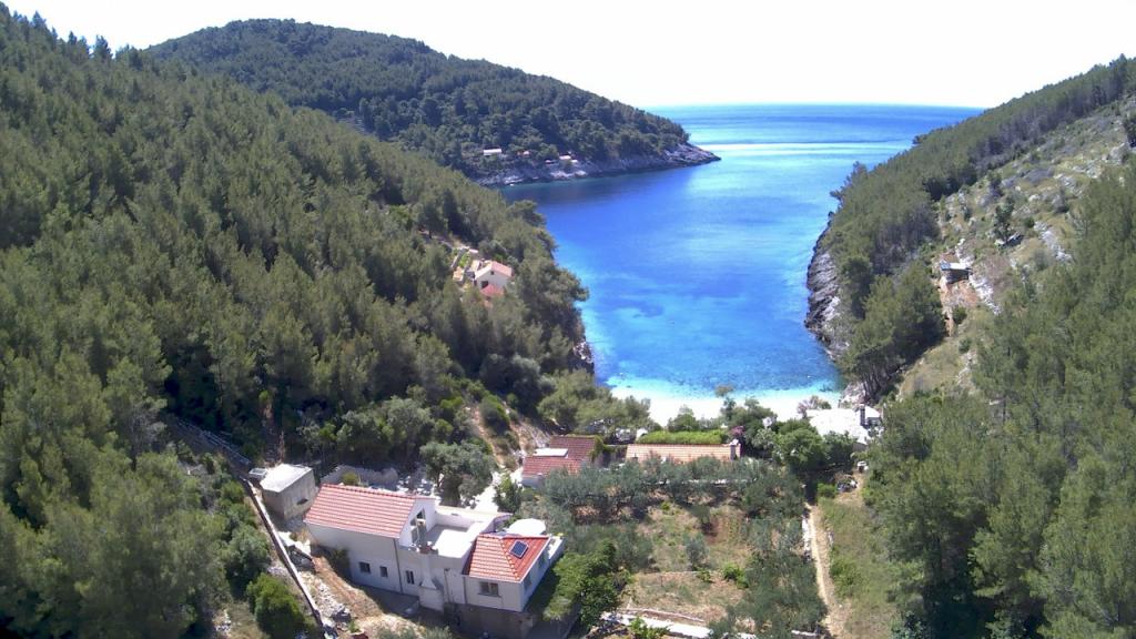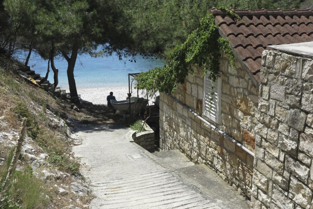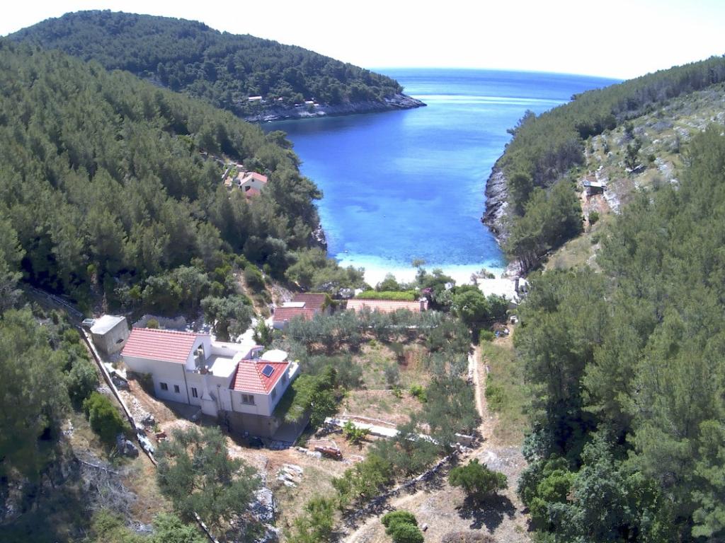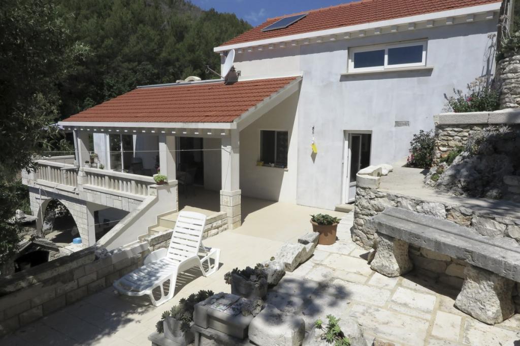 HOUSE "MAJA" FOR RESTEN AF SJÆL OG KROP ligger i bugten Bratinja luka, 8 km væk ad makadamvejen fra landsbyen Žrnovo, øen KORČULA. Parkering er placeret 100 meter fra huset. Vi tilbyder to lejligheder, en til 4 personer (lavere niveau) og den anden ovenfor til 4 1 person. Der er ingen turistfaciliteter i bugten, ingen restauranter, butikker ligger fra 8 til 12 km væk, bortset fra en fremragende landlig husholdning med lokal mad 5 km væk fra bugten, på vej til Žrnovo. På grund af nærheden til havet og den milde stenstrand er huset særligt interessant for familier med førskolebørn, og for dem, der søger ensomhed og fred i maj, juni, september og oktober. Da vi tilbyder en semi-Robinson-stil af turisme, bør behovet for at spare på vandet understreges, og elforbruget er begrænset!