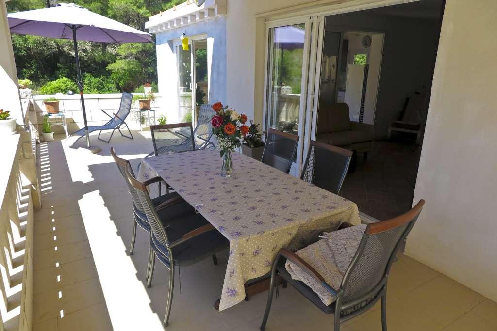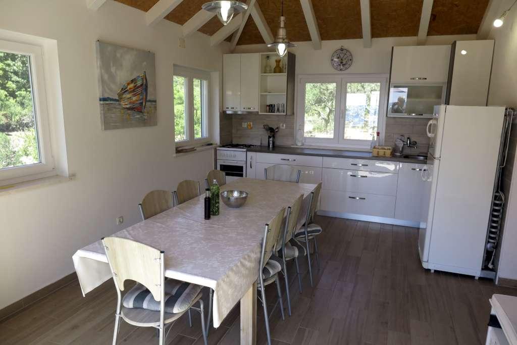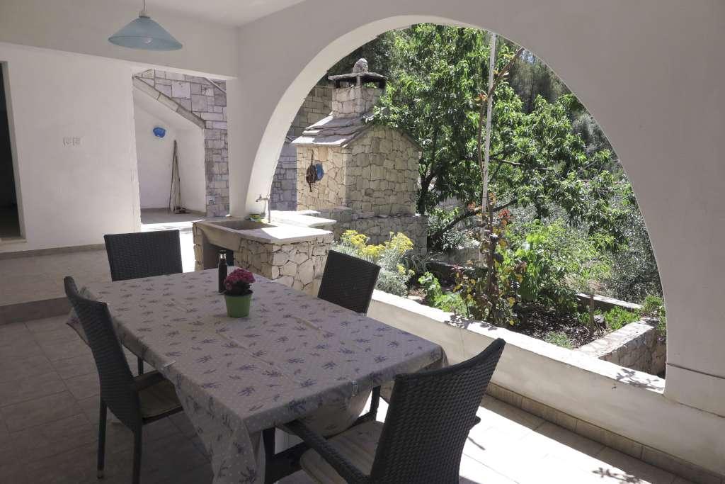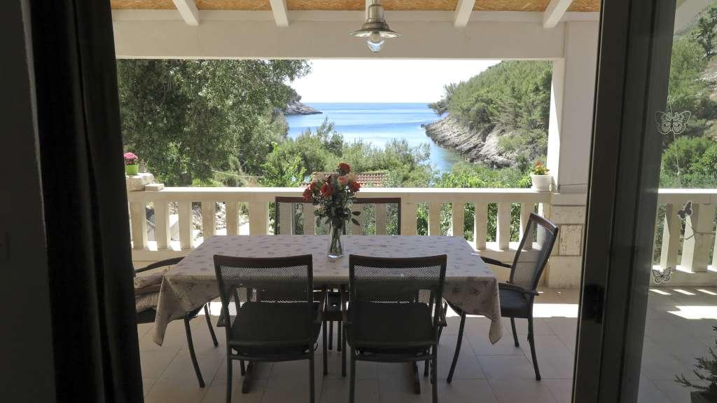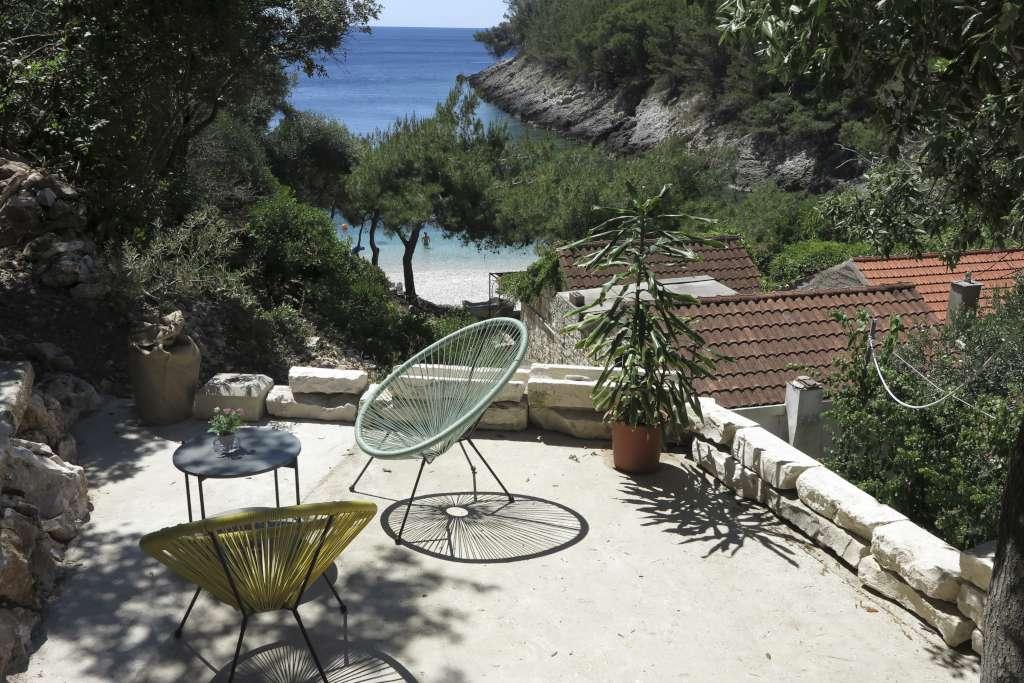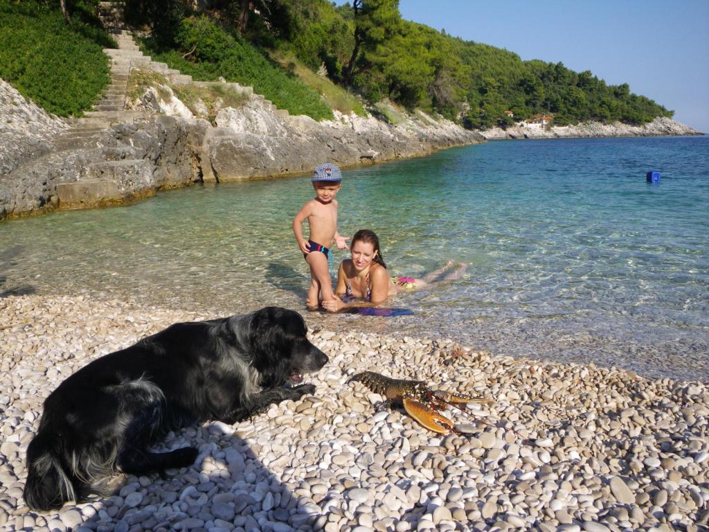 HOUSE "MAJA" FOR RESTEN AF SJÆL OG KROP ligger i bugten Bratinja luka, 8 km væk ad makadamvejen fra landsbyen Žrnovo, øen KORČULA. Parkering er placeret 100 meter fra huset. Vi tilbyder to lejligheder, en til 4 personer (lavere niveau) og den anden ovenfor til 4 1 person. Der er ingen turistfaciliteter i bugten, ingen restauranter, butikker ligger fra 8 til 12 km væk, bortset fra en fremragende landlig husholdning med lokal mad 5 km væk fra bugten, på vej til Žrnovo. På grund af nærheden til havet og den milde stenstrand er huset særligt interessant for familier med førskolebørn, og for dem, der søger ensomhed og fred i maj, juni, september og oktober. Da vi tilbyder en semi-Robinson-stil af turisme, bør behovet for at spare på vandet understreges, og elforbruget er begrænset!