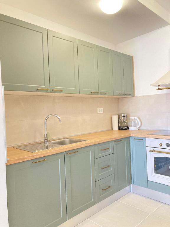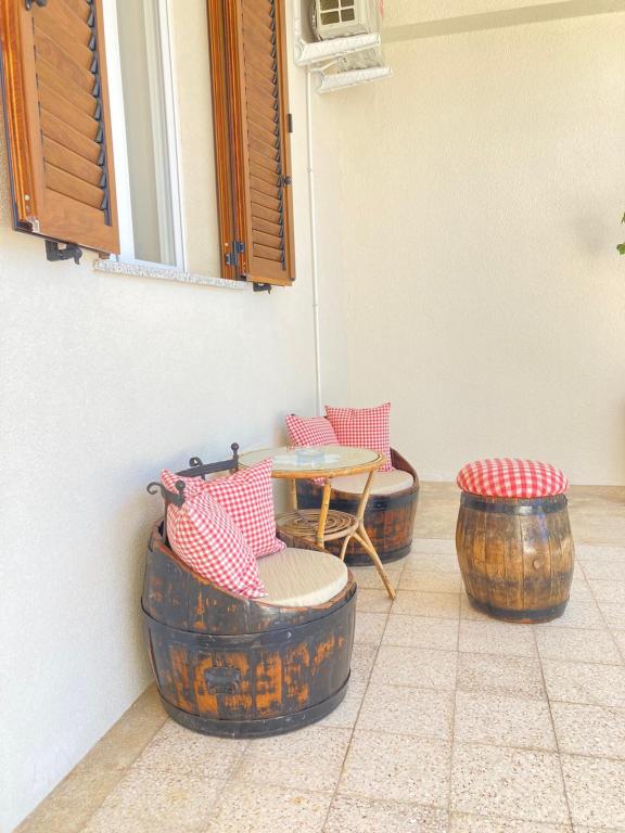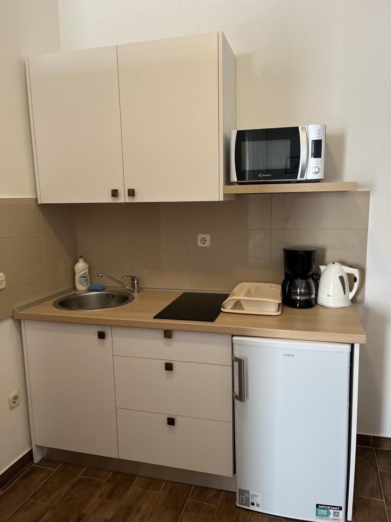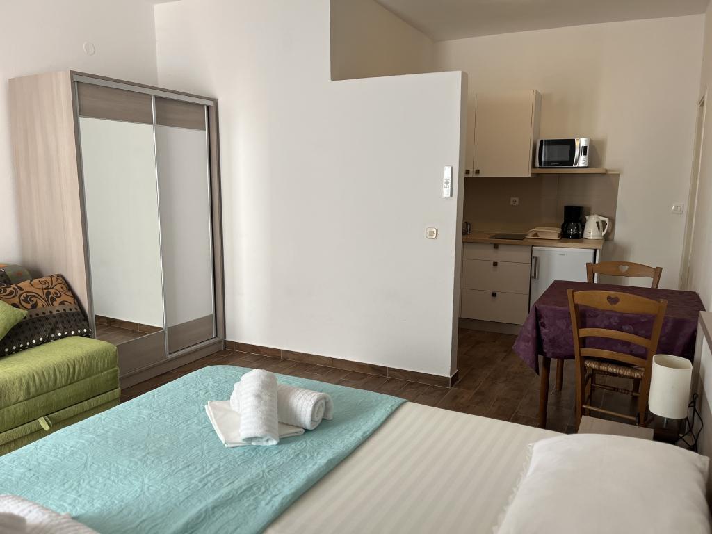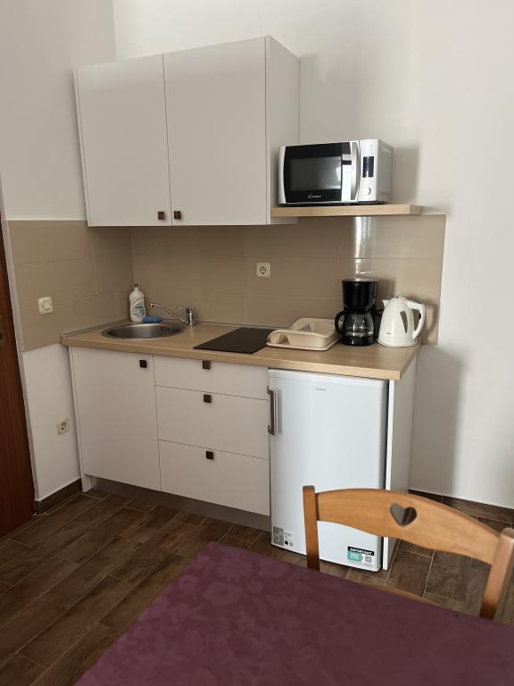 Veludstyrede lejligheder i første række til havet i den rolige landsby Zubovići (Dražica 9). Ejendommen ligger 5 minutters gang fra landsbyens centrum, hvor der er restauranter, posthus, butik og bageri. Sandstranden ligger 5 minutters gang derfra, og foran huset er der en lille strand. Alle boligenheder har aircondition, tv, gratis internetadgang og sikker parkering. I baghaven er der en grill til rådighed for gæsterne.