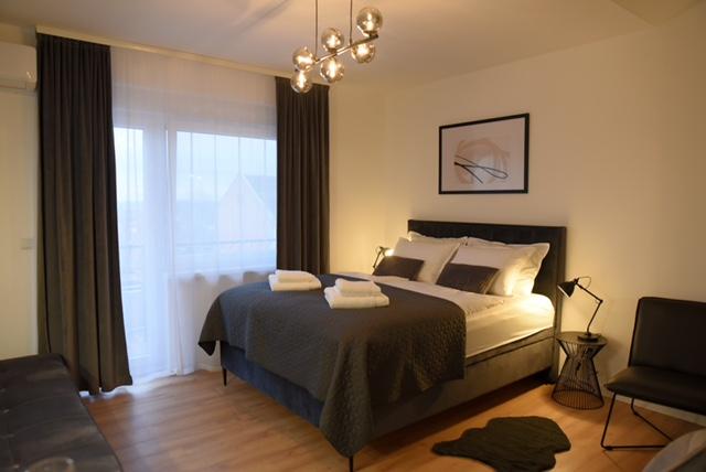 Studiolejlighed Mia ligger i centrum af Županja. Lejligheden er nyistandsat og moderne og luksuriøst udstyret. Det består af et værelse med en stor dobbeltseng, en udtræksseng, et opholdsområde, et fladskærms-tv, gratis WiFi, et veludstyret køkken med køleskab, mikrobølgeovn, kaffemaskine og andre apparater, et separat badeværelse med en vaskemaskine og kosmetik, en gang med et klædeskab og en balkon med udsigt over byen. Lejligheden er beliggende i et beboelsesejendom, der ikke har elevator på 4. sal. Der er en offentlig parkeringsplads foran bygningen, som er opkrævet, prisen per time er €0,40.