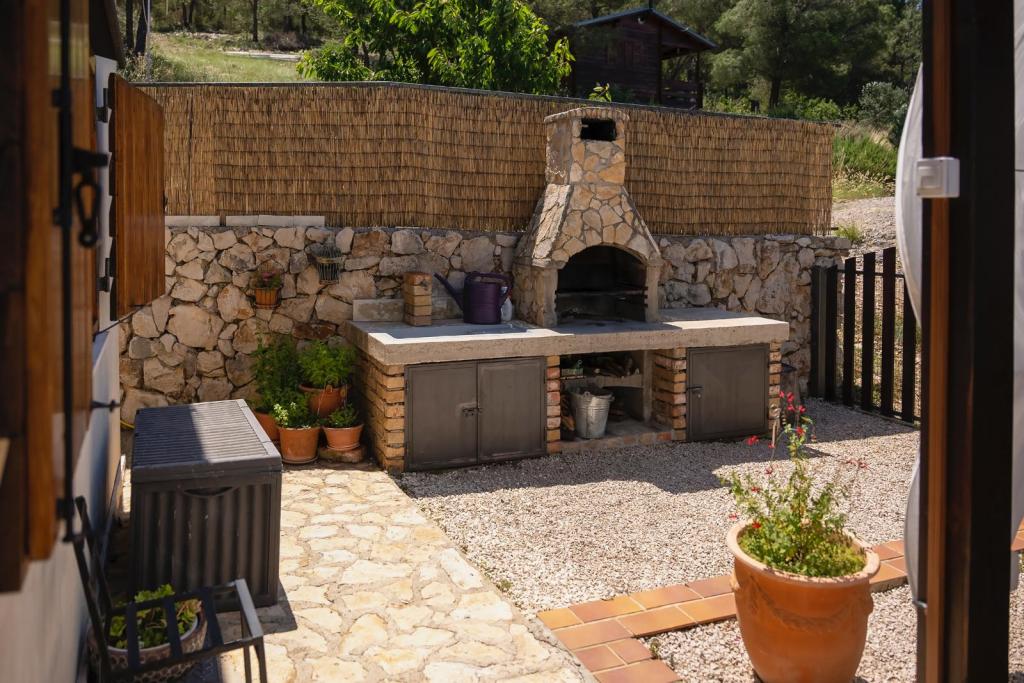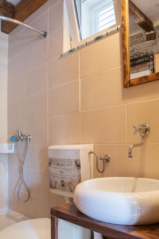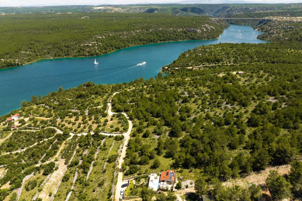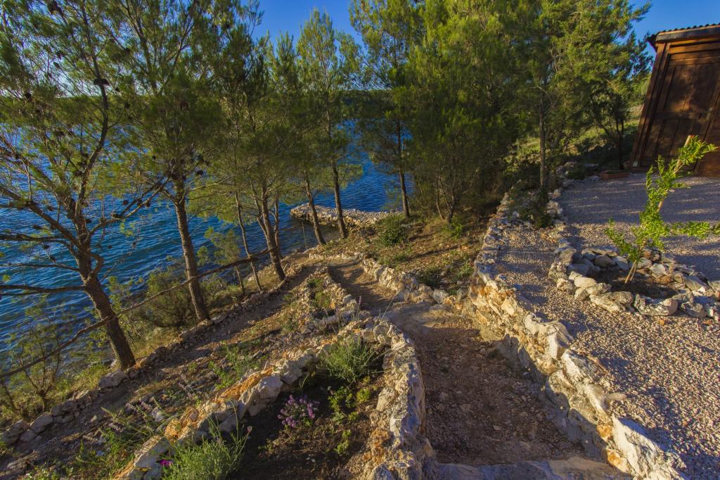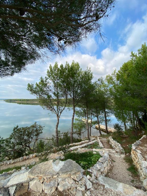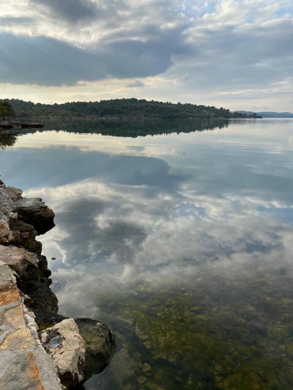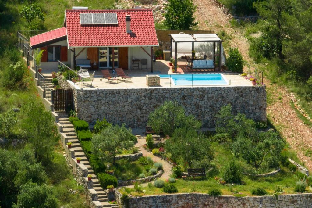 Dette lille uimodståelige hus ligger i landsbyen Bilice Vrulje, kun 15 minutters kørsel fra centrum af Šibenik, men langt nok fra byens larm og travlhed. Beliggenheden gør dette hus til det perfekte valg for dem, der har brug for fred og hvile i naturen. Og udover beliggenheden vil det ydre af denne charmerende lille villa glæde dig, såvel som dens eventyrlige omhyggeligt dekorerede interiør. Huset består af et køkken/alrum, en stue, et badeværelse, et soveværelse og et soveværelse på galleriet. Udearealet dækker 100 m2; terrassen med panoramaudsigt er det ideelle sted at nyde solnedgangen eller forfriske dig selv i poolen. Derudover er der også en pergola, hvor du kan læe dig for solen og nyde måltider tilberedt på grillen. Og kun 5 minutters gang væk ligger en privat strand i skyggen af en fyrreskov. Der er et opbevaringsrum i træ på stranden, hvor du kan opbevare dine ting, mens du nyder at svømme eller padle i kajak eller SUP, som også er tilgængelige. Stranden kan også nås i bil.