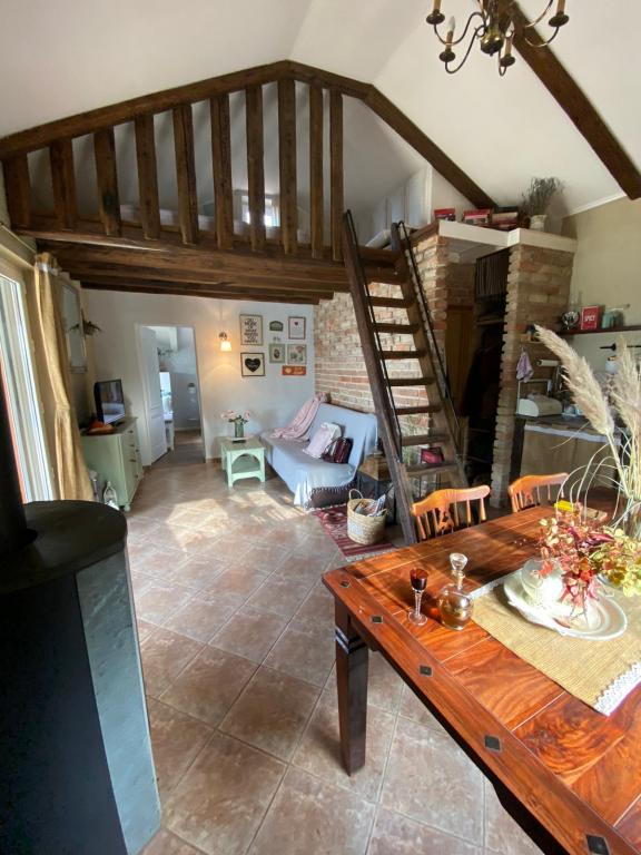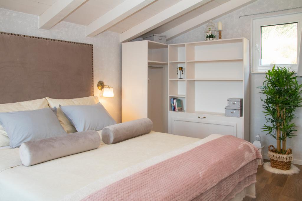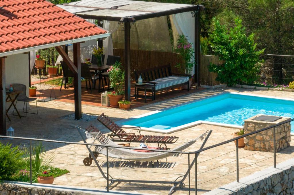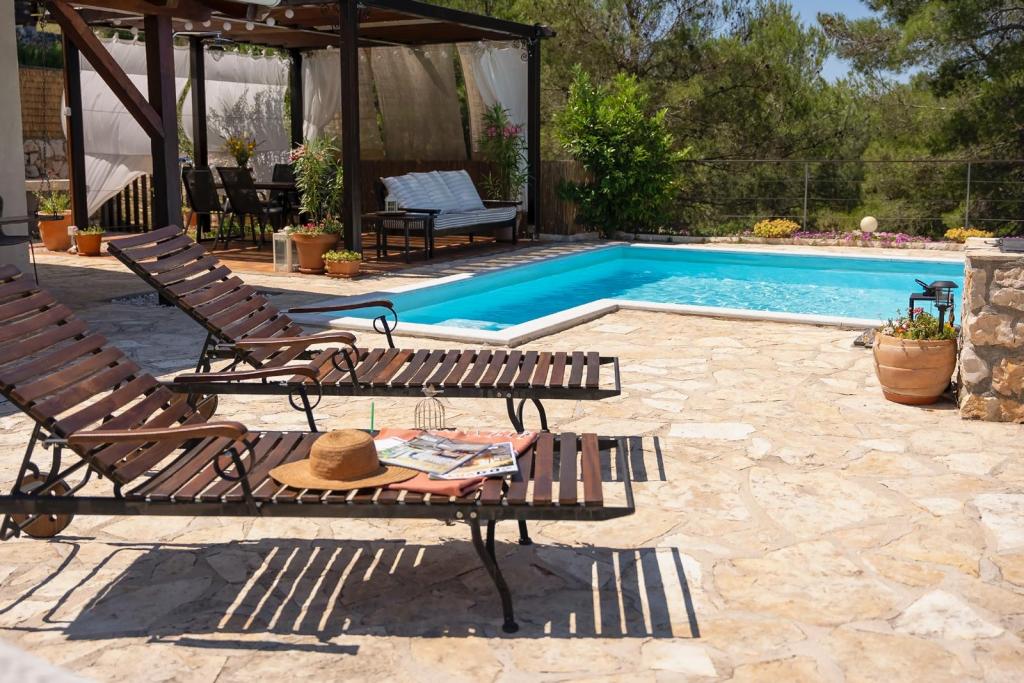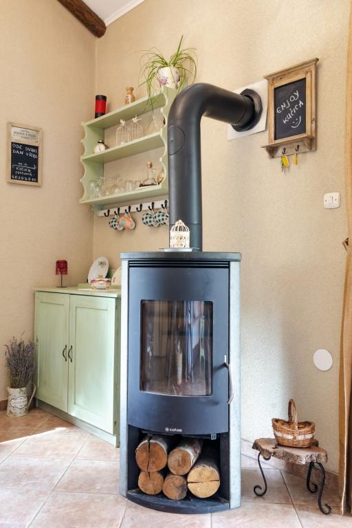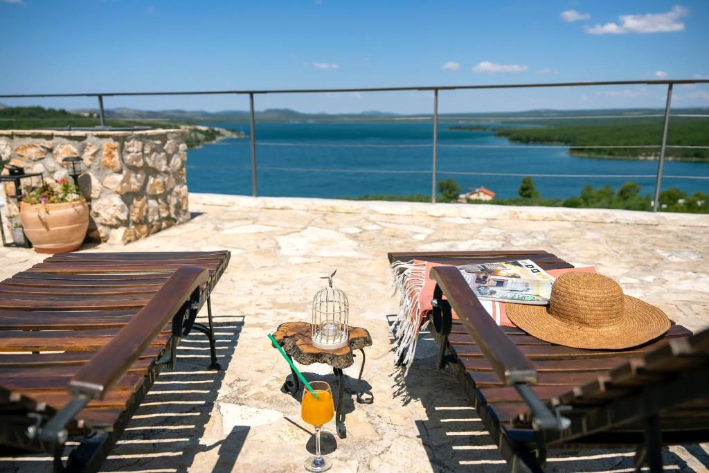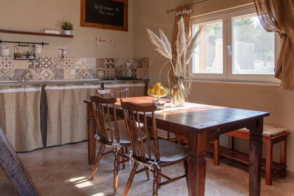 Dette lille uimodståelige hus ligger i landsbyen Bilice Vrulje, kun 15 minutters kørsel fra centrum af Šibenik, men langt nok fra byens larm og travlhed. Beliggenheden gør dette hus til det perfekte valg for dem, der har brug for fred og hvile i naturen. Og udover beliggenheden vil det ydre af denne charmerende lille villa glæde dig, såvel som dens eventyrlige omhyggeligt dekorerede interiør. Huset består af et køkken/alrum, en stue, et badeværelse, et soveværelse og et soveværelse på galleriet. Udearealet dækker 100 m2; terrassen med panoramaudsigt er det ideelle sted at nyde solnedgangen eller forfriske dig selv i poolen. Derudover er der også en pergola, hvor du kan læe dig for solen og nyde måltider tilberedt på grillen. Og kun 5 minutters gang væk ligger en privat strand i skyggen af en fyrreskov. Der er et opbevaringsrum i træ på stranden, hvor du kan opbevare dine ting, mens du nyder at svømme eller padle i kajak eller SUP, som også er tilgængelige. Stranden kan også nås i bil.