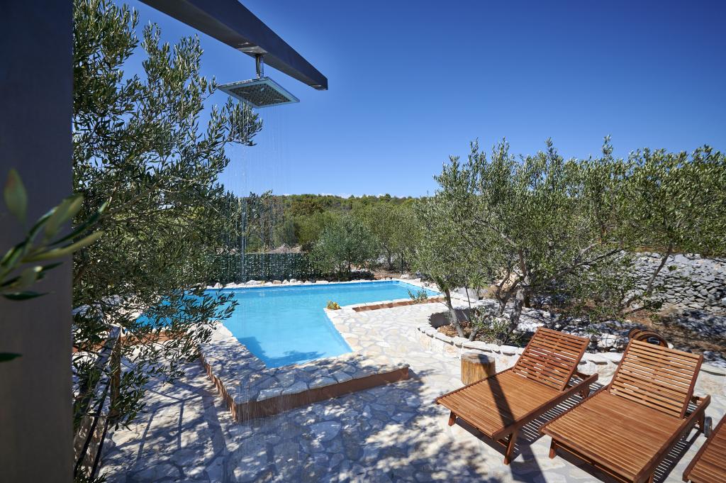 Ved ankomsten til lokationen blev vi mødt af en meget hjertelig vært, selve huset er indrettet på en rustik, pæn og ren måde, værten tilberedte et fyldt køleskab med kølede drikkevarer, hvilket var meget vigtigt for os efter turen. Gården er omgivet af oliventræer og grønne områder, poolen er ren og det omkringliggende område er ryddeligt. Under opholdet vedligeholdt værten regelmæssigt poolen og det omkringliggende område, var altid til din tjeneste og yderst venlig. Placeringen er meget rolig, der er 110 trin til den første strand, vi talte, og de nærliggende strande er 5-10 minutters gang. Byens centrum ligger 5 minutter væk i bil med alle de nødvendige faciliteter, butikker, apoteker, underholdningsfaciliteter mv. Et meget afslappende feriested, vi kommer helt sikkert tilbage, og alle anbefalinger til dem, der ikke har besøgt, vil du ikke fortryde.