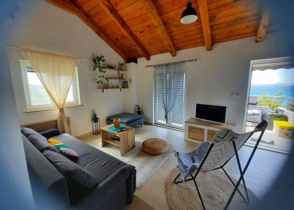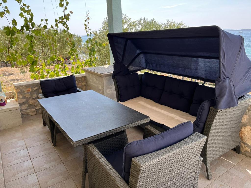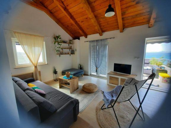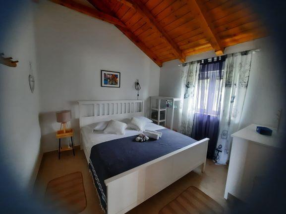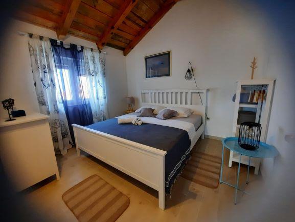 Hvis du ønsker en ferie uden biler, turistmængder, fordelene ved civilisation og infrastruktur, så er dette det rigtige valg for dig. Huset ligger på den sydlige side af øen Pašman i Čerene Bay med udsigt over Kornati National Park. Det tilbyder solenergi og rindende vand fra en tank, der skal håndteres sparsomt. LEJLIGHED 1 To soveværelser med i alt 6 senge, badeværelse, køkken, spisestue, stue, terrasse. LEJLIGHED 2 To soveværelser med i alt 4 senge, badeværelse, køkken, spisestue, stue med sovesofa til to personer, terrasse og udendørs grill. Udenfor huset er der solbruser og grill. Huset nås af en sti, der er på nogle dele makadam. På gæstens anmodning er det muligt at arrangere transport til anlægget. Bygningen udlejes i sin helhed. I løbetid 06.09.2022. det er muligt kun at leje én lejlighed til max 6 personer (4 + 2) til nedsat pris. Ved leje af den ene lejlighed udlejes den anden ikke, så gæsterne har deres privatliv.