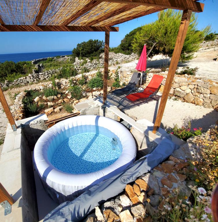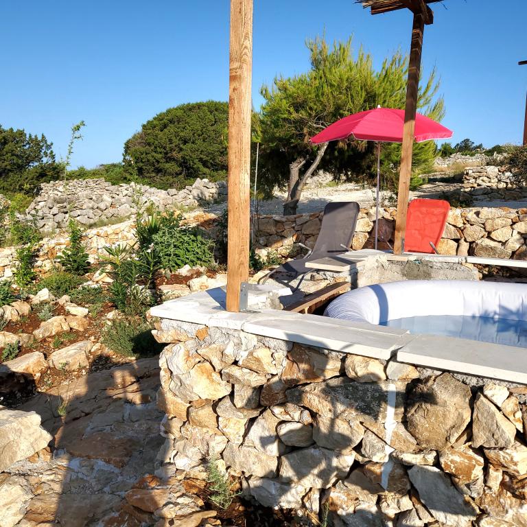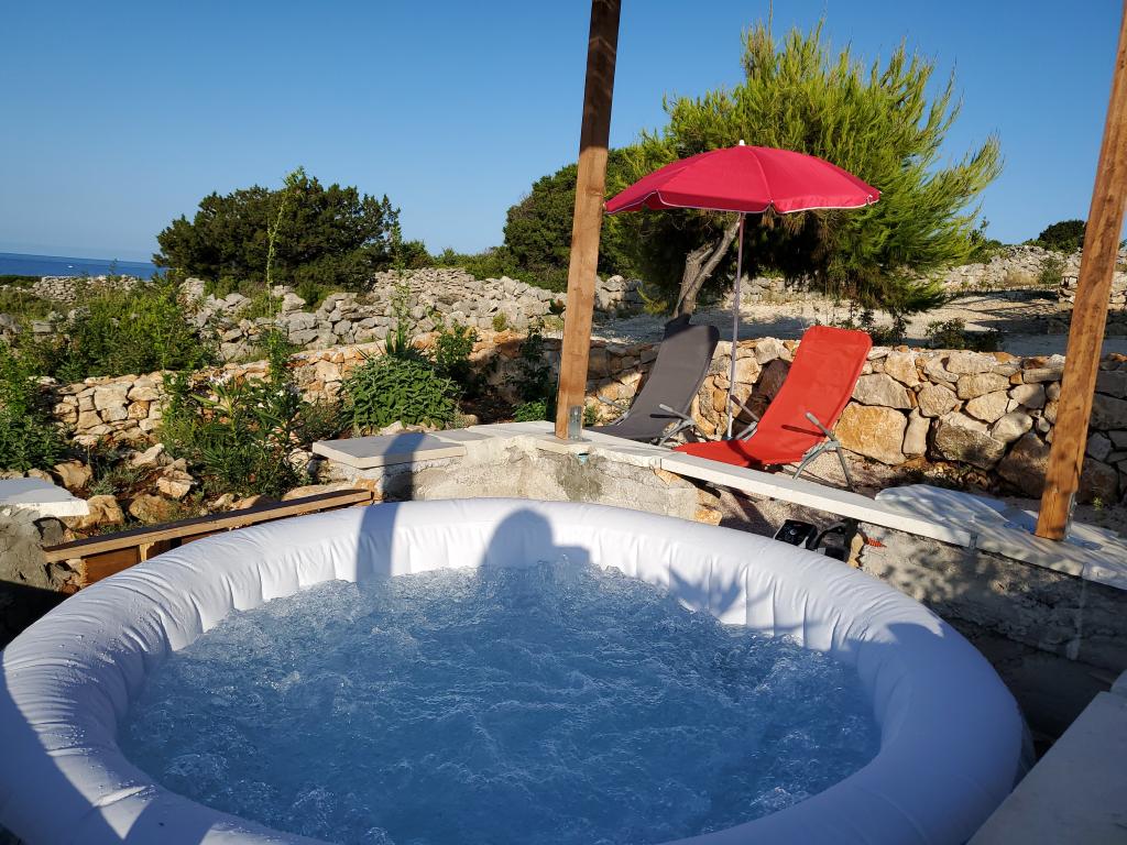 Turistskat er inkluderet i prisen. Dokumentation for reservationsbekræftelse ved reservationDer er et lille blåt hus på ejendommen, der har plads til 6 personer og kan lejes sammen. Du kan se mere om denne indkvartering på: https://www.apartmanija.hr/robinzonski-turizam/drvenik-mali/pregled-oglasa/355. Prisen inkluderer brug af jacuzzi, kajakker, stand-up paddleboard og, om nødvendigt, en børnepool.