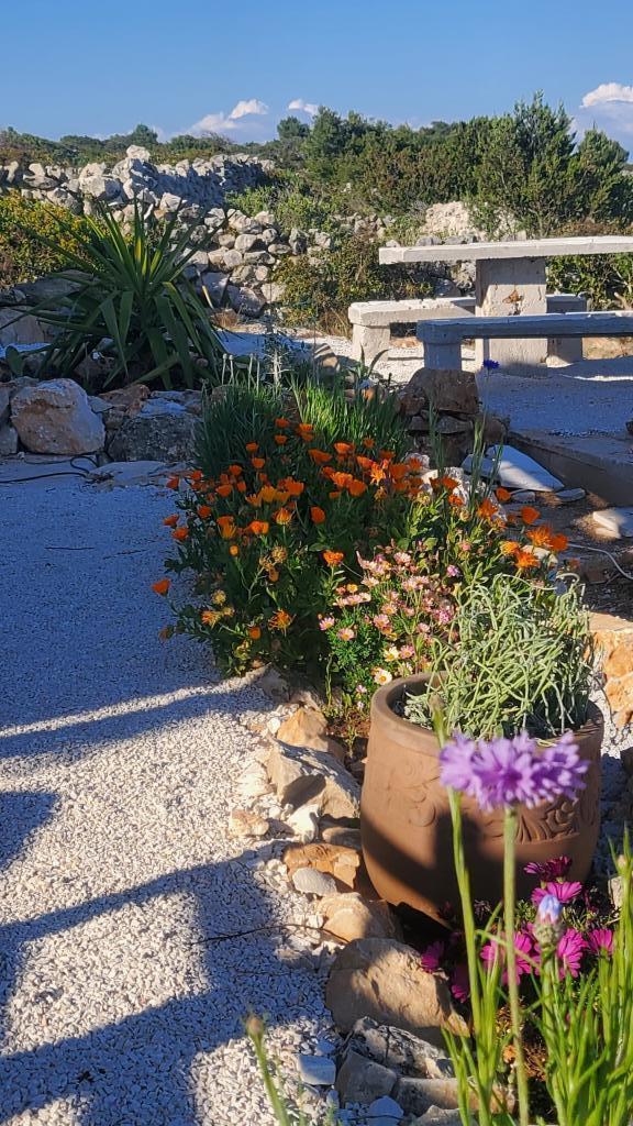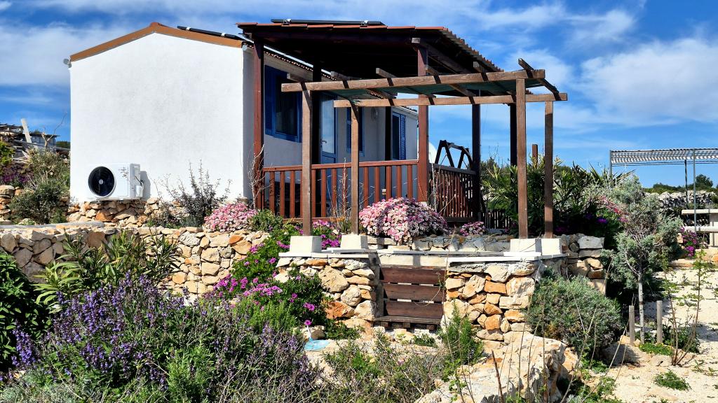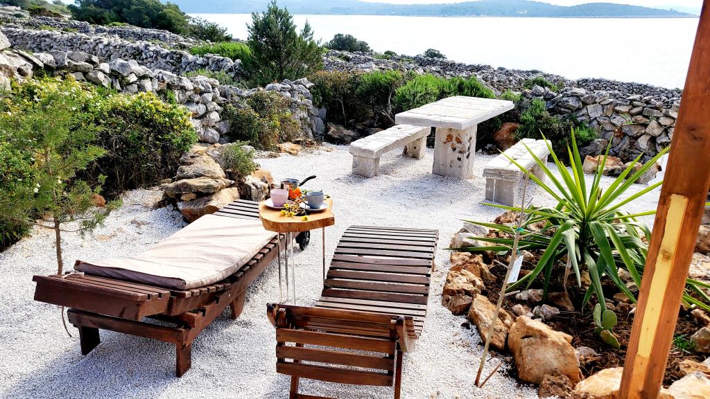 Du kan finde hav og sol overalt ved Adriaterhavet, men hvis du virkelig ønsker at slappe af uden byens og forbipasserendes støj med de smukkeste solopgange og solnedgange, så er denne ø nær Trogir ideel til dig. Feriehuset, der er drevet af solenergi, ligger kun 30 meter fra havet, og udover havet har det også udsigt over naturlige klipper dannet af bølgernes årtusindgamle spil. Dette, nu renoverede og engang et mobilhome, er beregnet til alle, der elsker naturlig skønhed, masser af duftende grønt og søger lidt ro, og hvis du har brug for det, er Wi-Fi også inkluderet i tilbuddet. Du kan også medbringe dit kæledyr på ferie, og for dem, der kan lide at grille, er der en stor udendørs pejs til rådighed. Huset har aircondition og består af et fuldt udstyret køkken, to soveværelser og et badeværelse. Foran huset er der en overdækket terrasse med bord, stole, liggestole og en udendørs bruser. Så hvis du vil til et sted, hvor tiden går langsomt, og hvis du er ivrig efter uberørt natur - kom til os.