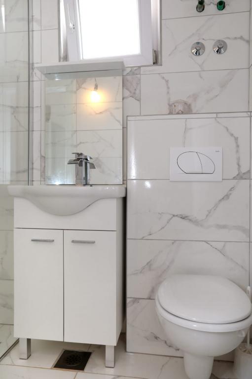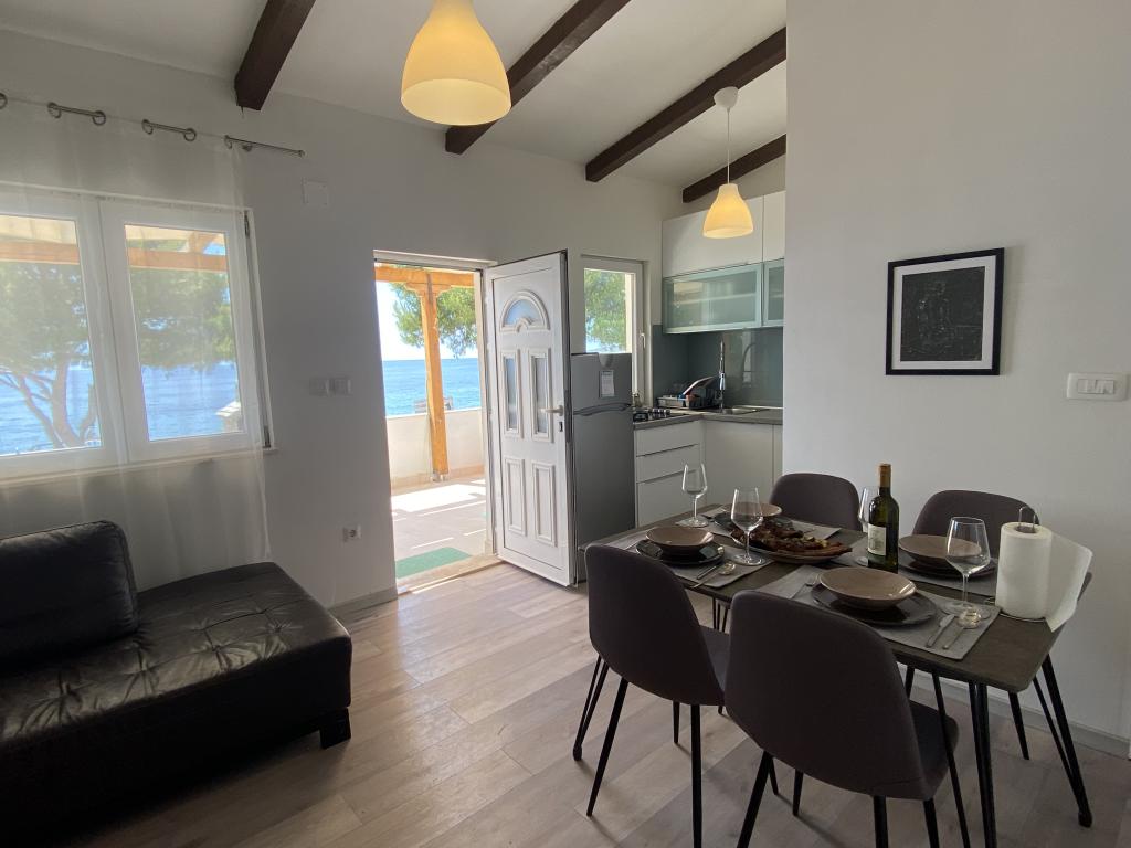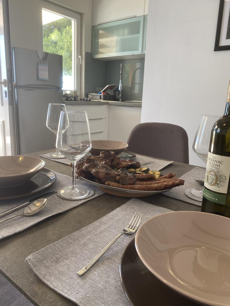 Et pænt møbleret hus, alt er nyt, positionen er ideel til at beundre solnedgange, havet er vidunderligt gennemsigtigt, det er ikke en klassisk strand, klipper til at gå i havet, men du kan gå i havet uden problemer. I det meste af vores ferie blæste mistralen, så selv med temperaturer på 35 - 36 C led vi ikke af varmen. Huset er udstyret med et kraftigt solcelleanlæg, så det er umuligt at løbe tør for strøm. Køleskabet er ret stort og er elektrisk (indtil nu havde alle Robinsons gasdrevne køleskabe af mindre dimensioner). Jeg anbefaler det til dem, der ønsker total afbrydelse. Du ser muligvis nogle forbipasserende, men du vil for det meste være alene langs kysten. Butikken ligger kun 25 minutter væk. til fods eller 10 minutter i bil. Slobodna (ejeren) er super venlig og vi hyggede os max.
