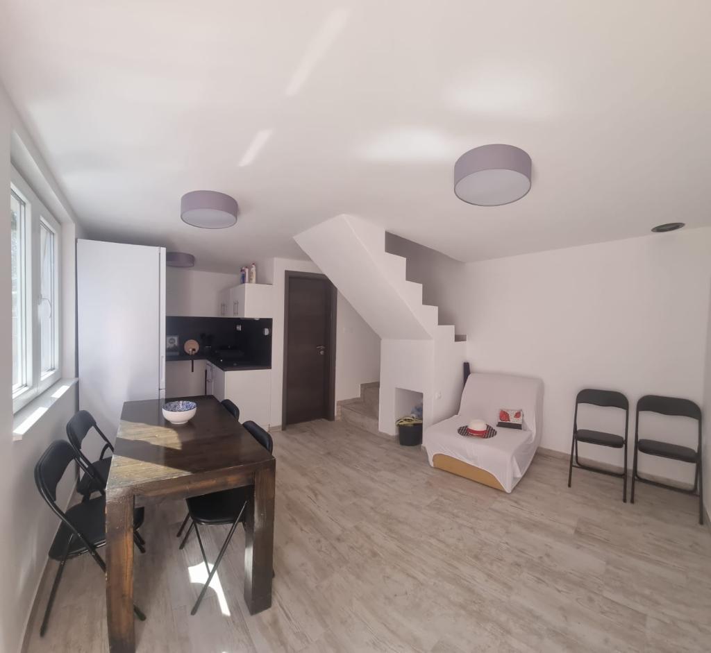 Fiskerhus i Vrulje-bugten - Kornat-øen. Renoveret hus til max. 5 personer ligger i hjertet af Kornati, kun 30 meter fra havet. Huset er udstyret med gaskomfur og køleskab, køkkenet er fuldt udstyret. Huset har sin egen plads til båden. På husets første sal er der et værelse, der kan sove 4 voksne, i stuen i stueetagen er der en ekstra seng, der kan sove 1 person. Kæledyr er tilladt mod et ekstra gebyr. Transport til huset fra Murter er organiseret mod et ekstra gebyr.