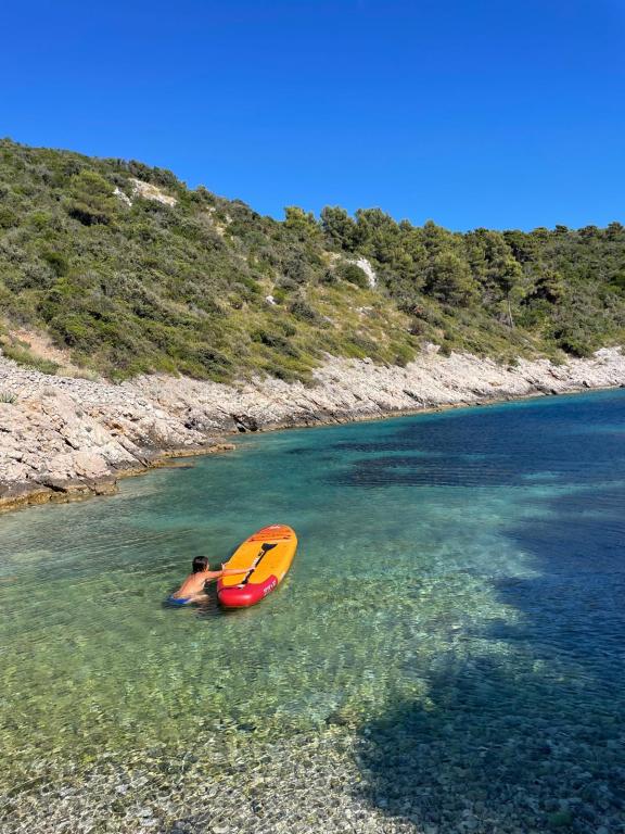 Køkkenet er fuldt udstyret med service og basale apparater. Derudover har huset salt, peber, olie, eddike og et par liter drikkevand på flaske. Der er også opvaskemiddel, rengøringsmidler, håndsæbe og toiletpapir. Der vokser nogle krydderier omkring huset (rosmarin, fennikel, laurbærblad, salvie, mynte og andre aromatiske dalmatiske urter). Selvfølgelig er sengelinned, tæpper og håndklæder klargjort. For dem, der foretrækker en mere aktiv ferie, er der også et stand up paddleboard (SUP).