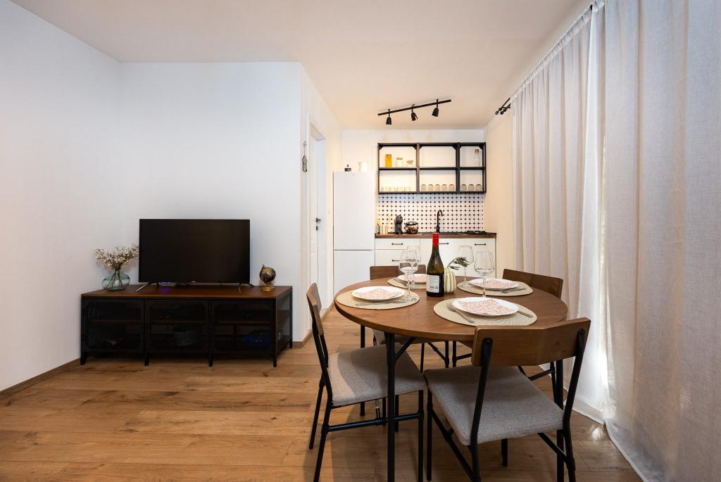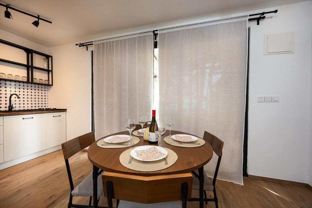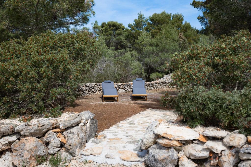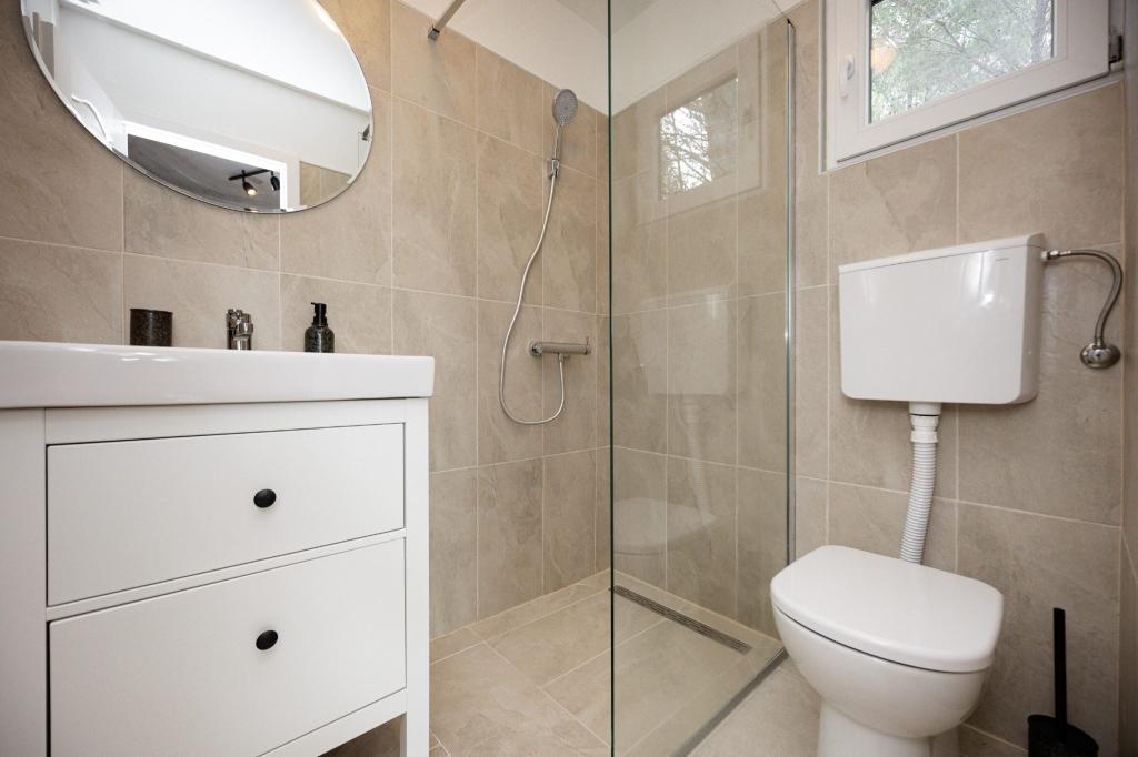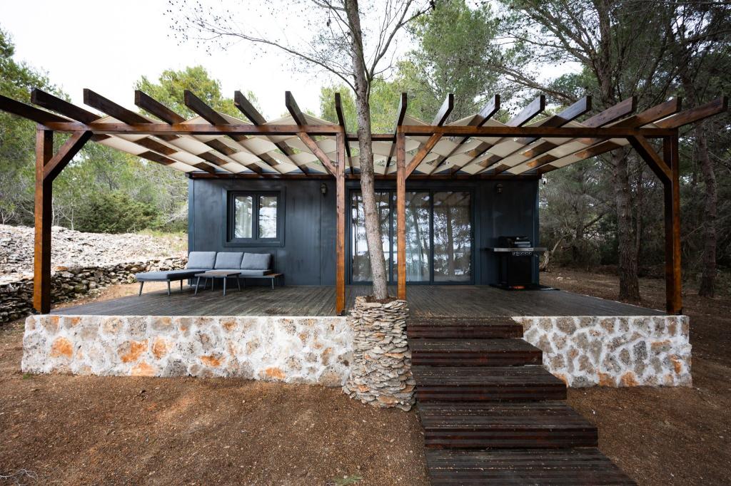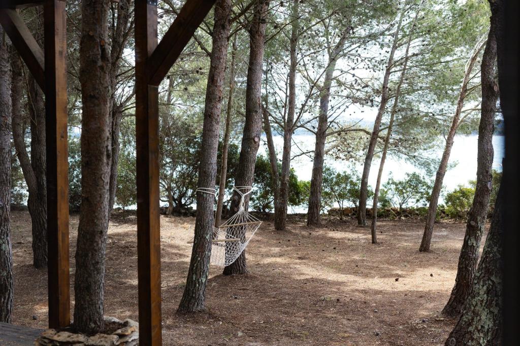 Kysthuset "Una" ligger fuldstændig isoleret, omgivet af grønne områder og uberørt natur, hvilket gør det til et ideelt sted at undslippe hverdagens stress. Det ligger kun 5 minutters speedbådstur fra øen Murter. Her kan du nyde stilheden, den naturlige skygge og havet, som kun ligger få skridt væk. Den nærmeste facilitet ligger 70 meter væk og er ikke i brug, hvilket yderligere garanterer fuldstændig fred og privatliv. Dette er det perfekte sted at slappe af og komme i kontakt med naturen, væk fra folkemængderne og støjen. Huset kan kun nås med båd, og transport er inkluderet i prisen. Ankomst i bil er ikke mulig - køretøjet skal parkeres på vores parkeringsplads i Murter.