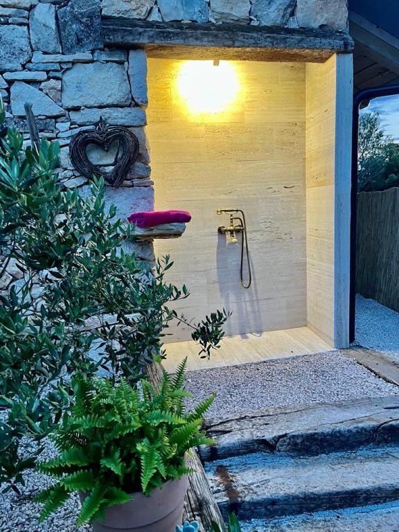 Luksus afsondret hus i en olivenlund ved siden af havet. Vi tilbyder en uforglemmelig Robinson-atmosfære af høj kvalitet indkvartering. Det er muligt at ankomme til ejendommen i bil. Flere parkeringspladser til rådighed. Vi tilbyder en stor jacuzzi, udendørs havemøbler, liggestole, gynger, en stor stengrill, udendørs bruser. Anlægget er fuldt udstyret til et behageligt ophold, køkken med alle hårde hvidevarer (gaskomfur, køleskab, fryser, opvaskemaskine, kaffemaskine, elkedel...Wi-fi, internet, satellit-tv. Pladsen har aircondition og har en central varme, der gør, at du kan opholde dig selv i vinterperioden. Badeværelset har rummeligt bruseniche og vaskemaskine samt andet udstyr.