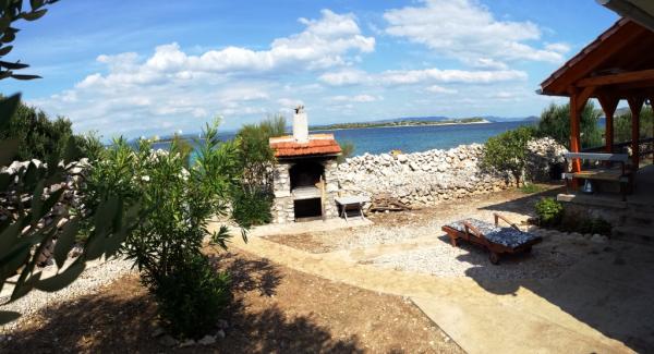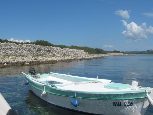 Vi havde mulighed for at holde ferie i huset, og jeg vil gerne skrive om oplevelsen. Øen er lille, og der er kun ét hus på den, så du kan nyde havet i fuldstændig fred. En båd vil sejle forbi eller lægge til i nærheden, ellers møder du ingen. Stranden er ikke sandet, men småsten og beton, alligevel er indgangen til havet glat, og havet er lavvandet. Vi havde børn med, og der var ingen problemer. Adgang er også mulig via trin, selv så havet er talje dybt. Huset var rent, duftende lagner og håndklæder til rådighed. Kommercielt vand, til madlavning og drikke skal du selv medbringe vand. Kun koldt vand løber i håndvask, håndvask og bruser. Varmt vand er udenfor. Der er en tønde vand, som vil blive opvarmet af solen. Forvent ikke varmt vand, men nok til brusebad, ikke noget problem selv at vaske dit hår. En stor oplevelse for børn. 12 V lys, intet problem med det. Mobiltelefoner og computere kan genoplades på en reservekilde, andre apparater kan ikke. Køleskabet er gas, det kølede godt af, det har en lille fryser. Der er redskaber nok, der er også olie, mel, lidt pasta, sukker osv., toiletpapir, papirservietter. Vi prøvede ikke tv og radio, det var ikke nødvendigt. Leje af en motorbåd, men pas på, det fungerer ikke uden et kaptajncertifikat, der er ingen anden båd. Men du kan forhandle med ejeren, og for et gebyr på 120 euro vil han tage dig til fastlandet og derefter tilbage. Der var også myg, men ikke noget forfærdeligt, nogle her og der, bestemt ikke så meget som på fastlandet. Men hvad jeg anbefaler er en insektspray, myrerne kom til huset, alt vi skulle gøre var at sprøjte vejen med afskrækningsmiddel og de var væk. Ejeren er sød, hjælpsom. Og vores opsummering, en rolig ferie uden mennesker, en masse hvile og et stykke hav, der tilhørte os i en periode.