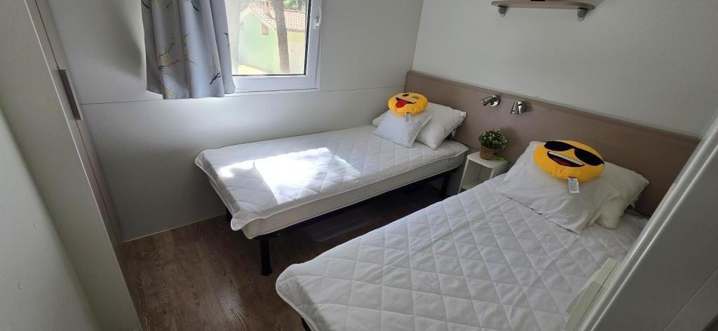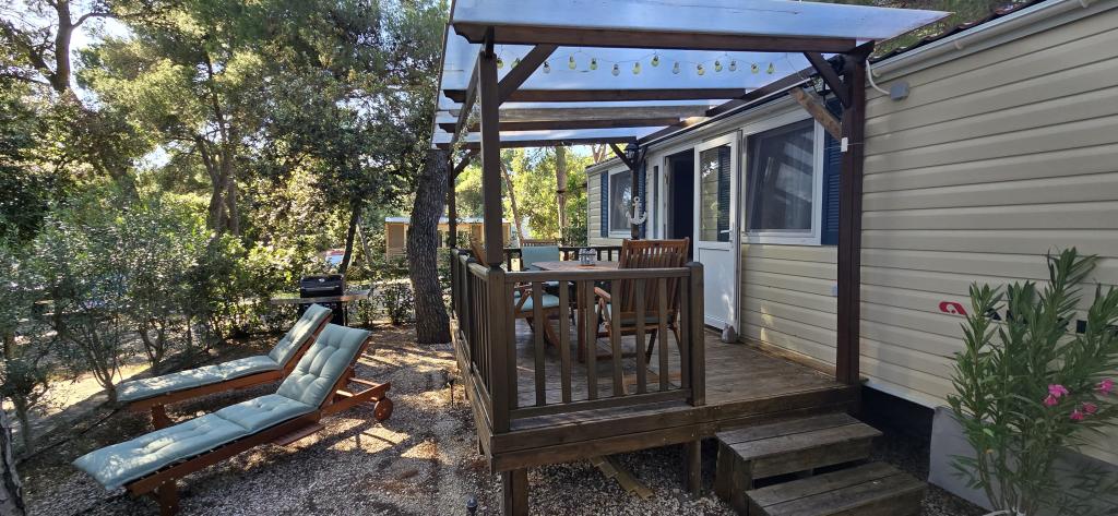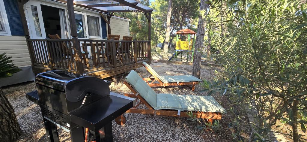Sommeren er her, book din aftale til 2025 Mobile Home Vomer Strandenhed Fuldt udstyret mobilehome i Camp Kozarice Pakoštane Strand 50 m Behagelig skygge selv under den stærkeste sol. 4+1 personer 32 m2 + terrasse 10 m2 Soveværelse 1 1 dobbeltseng Soveværelse 2 2 enkeltsenge Stue (sovesofa) 2 badeværelser udendørs bruser, TV Gratis parkering (lige ved siden af huset) Gratis WiFi (A1 højhastighedsinternet) Aircondition Grill Linned, håndklæder Køkkenet har induktionskogeplade, køleskab med fryser, mikrobølgeovn, brødrister, elkedel, service... Et sted at slappe af i komfortable liggestole venter dig på terrassen. Der er en park på campingpladsen, og der er vaskemaskine og tørretumbler i nærheden. Restaurant og café i lejren få minutters gang væk. Tæt på byen (3 min gang), promenade, restauranter, caféer, apotek, butikker,