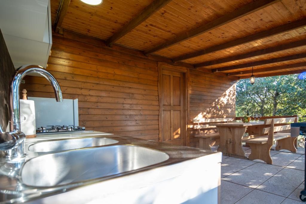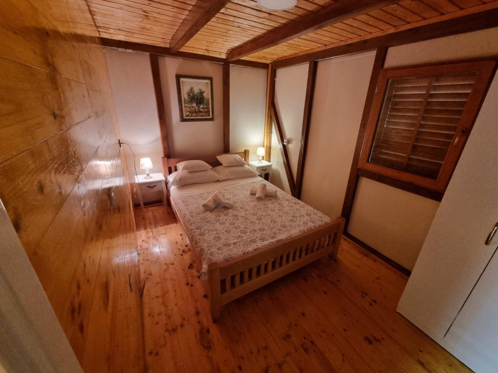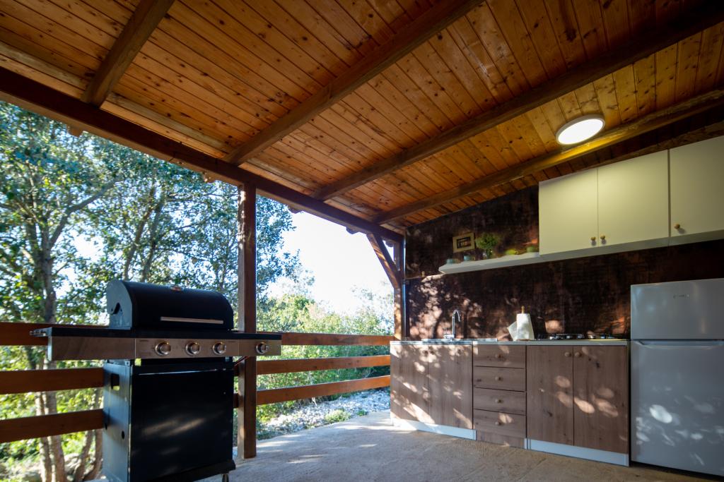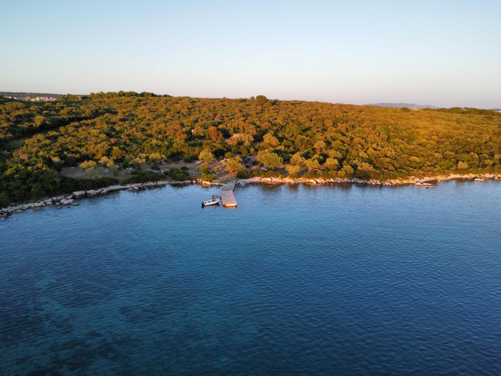 Et nybygget træhus på et afsides sted på øen Babca, som kan nås fra byen Pašman på øen af samme navn. Det er beliggende på over 10.000 m2 privat grund og har 25 m2 indvendigt rum, hvori der er to dobbeltsenge i to værelser, der måler 140x200 cm og et badeværelse. Køkkenet og bordet er placeret på det udvendige overdækkede areal på 15m2. Der er tv i det ene værelse. Der er wi-fi internet i huset.