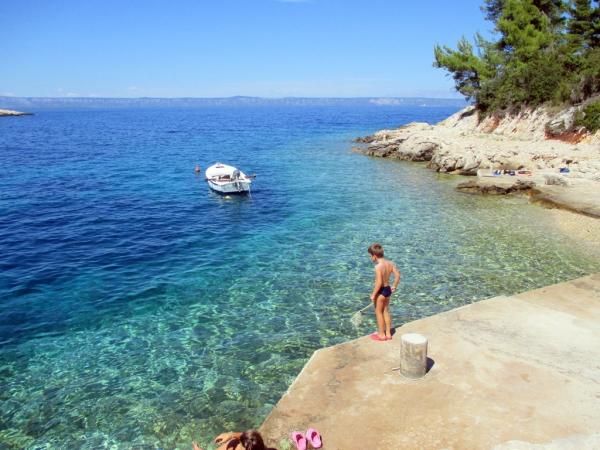 Turistskat er inkluderet i prisen.Vejen og den private parkeringsplads ligger kun 80 meter væk og er forbundet med huset via en cementeret sti. For fuldt ud at nyde dette lille stykke paradis er det nok at medbringe en god bog. Hvis du derimod vil prøve kræfter med fiskeri, eller du allerede er en erfaren fisker, er det nok at medbringe fiskeudstyr. Fiskerhuset tilbyder en ægte og original dalmatisk atmosfære, komplet med en vidunderlig udsigt og krystalklart hav. Hvis du vælger os til din ferie, vil du blive budt velkommen i vores lejligheder. Desværre er dyr ikke længere velkomne på grund af negative tidligere oplevelser.