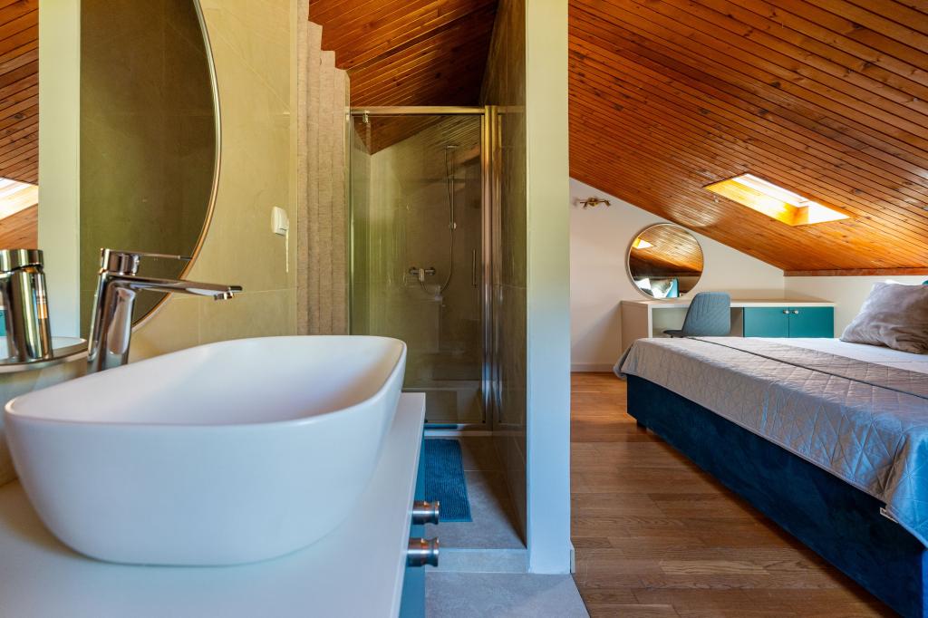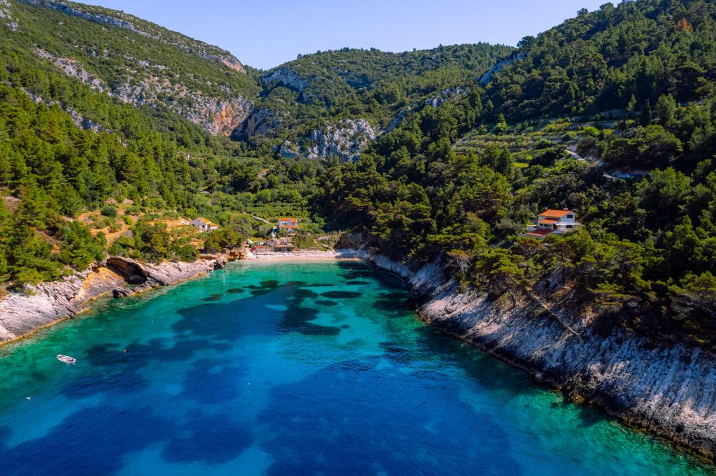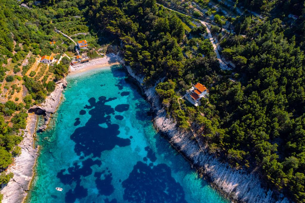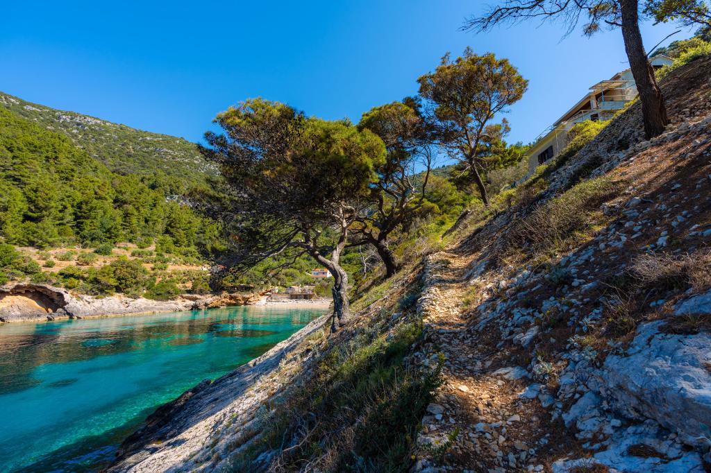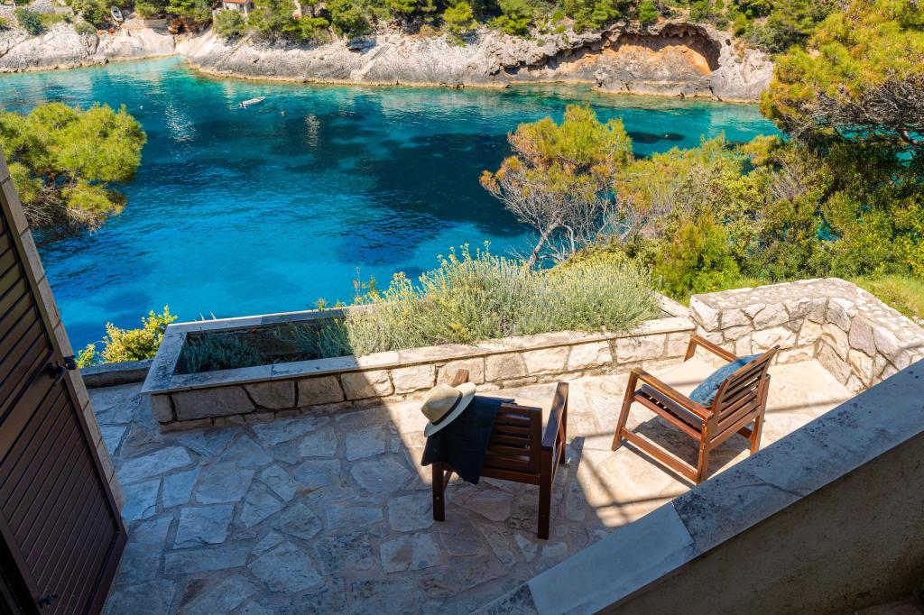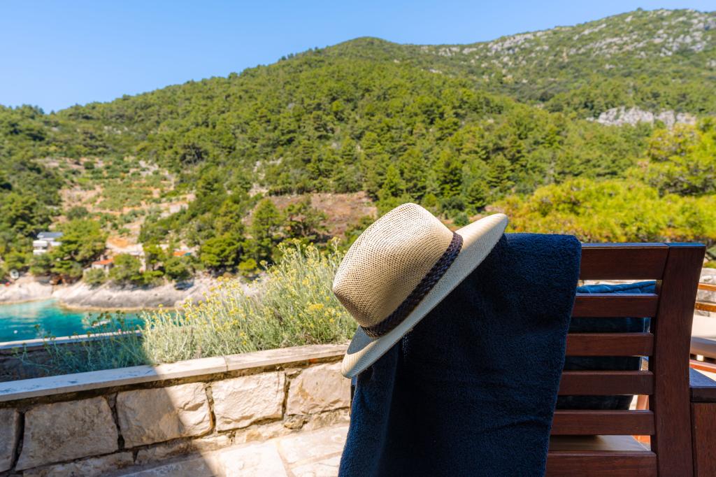 Fra bugten, der ser ud mod øen Lastovo, og videre: mod Italien, og som nærmest er afskåret fra civilisationen, ligger Robinsons hus. Huset har 4 soveværelser (kapacitet 8 personer), stue, flere terrasser, 3 badeværelser, to relativt veludstyrede køkkener, udendørs grill. Omgivelserne er stejle, stenede og grønne (stærk vegetation). I bugten er der en smuk stenstrand og en restaurant. På den anden side af bugten er der et par andre huse. Så du er ikke helt alene... Adgang til huset: Hovedvejen slutter, når du kommer til en lille, smal vej (5 km til huset). efter 5 km kan du efterlade din bil på parkeringspladsen. Derfra fører en smal sti til huset gennem rigelig vegetation (ca. 30m). Så kommer en unik oplevelse: en smuk udsigt og et meget velorganiseret og udstyret hus (selvfølgelig med de muligheder, som Robinson-området tillader). Vi ønsker at præsentere denne bolig for dig som noget unikt.
