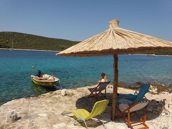 Vi var 2 familier, og vi tilbragte utroligt uge. Super sted for alle, der leder efter en helt sted og privatliv på stranden. Dejlige værelser, rummelige og godt udstyret køkken, men det meste af den tid, vi brugte på en stor skygge terrasse med flot udsigt til bugten. Nem adgang til vandet, kræves ingen sko, fordel af uden brus, som vi brugte i stedet for regelmæssig badeværelse inde. Det er ikke let at flytte alle de ansatte fra bilen til huset, er du nødt til at gå flere gange fra det punkt, hvor du parkerer din bil til huset på smalle, stenede spor, antal loops afhænger af din hænder kapacitet og volumen af personale du bragte men vi fandt nemmere måde og spurgte ejeren til at parkere sin båd 50 m fra vores biler og bruge en vandvej til at flytte poser. Jeg tror, de vil tilbyde denne nye måde at flytte ting til andre gæster fra nu. Ejer er meget hjælpsomme og venlige, god engelsk talende. Jeg anbefaler at bringe de fleste af de fødevarer og begrænse ture til Tkon at købe mad, bevæger sig i bil på øen på stenede veje er ikke meget komfortable. Du kan købe fisk fra lokale fishernan 2-3 gange om ugen.