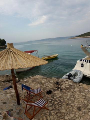 Vi tilbragte igen fantastisk tid i dette hus. Hvis du søger stille, afslappende tid uden for turismen, men du skal stadig komme tilbage til civilisationen (30 minutters kørsel), godt valg. Kun få skridt fra havet, nem adgang til vandet, hyggelige "Hawaian style paraply " giver dig skygge under opholdet på havet. Og hvis du vil nyde kolde drikkevarer fra køleskabet, har du brug for kun 30 sekunder at hente det fra køleskabet. Jeg anbefaler at acceptere ejeren ankomst til næste bugt (Zizanj) og brug lokale restaurant pier for at flytte dine tasker fra bil ved ejerens båd og brug denne måde at komme fra nærmeste grund til huset. Betyder at du skal bære tasker i dine hænder kun 50m. Stor fordel ved udendørs bruser - du behøver ikke at bruge den indendørs, dejlig at tage brusebad udenfor og se havet. 2. anbefaling - brug kun gaskøleskabet ellers vil du kæmpe med elektricitet, men det er stort nok til at gemme alle fødevarebehovene skal stryges i koldt. Ejer meget venlige og hjælpsomme. Hvis du kan lide aktiviteter - bringe noget som en (sup bord) eller en mountainbike til god morgen tur gennem øen. Cykel kan også bruges til at gå til Tkon for at shoppe.