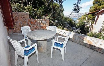 Hus og lejligheder i en afsides beliggenhed! Det ligger i Tatinja-bugten på nordsiden af øen Hvar i en lille beskyttet bugt væk fra turistmængderne, ejendommen ligger mellem havet og middelhavslandskabet. Huset har to lejligheder, og husets første sal består af tre værelser 2+1, 2+1, 1+1. Den første nabo ligger 500 m væk. Der er vand og elektricitet. Fra hovedvejen er der 1680 m grusvej og 1 km asfaltvej. Med bil kan du komme 10 m fra lejligheden og huset. Havet ligger 10 m væk, og det er rent. Der er en strand for børn. Der er to lejligheder, den ene er 2+1 og har køkken, stue, toilet, køleskab, indendørs pejs og har en stor terrasse med en meget flot udsigt over havet. Den anden lejlighed 3+2 består af et værelse, stue, køkken, toilet, har to altaner og en smuk udsigt over bugten. Den nederste del af huset har tre værelser 2+1, 2+1, 1+1, toilet, køkken, køleskab, pejs i køkkenet og udendørs pejs til grill, samt en brødovn. I nærheden ligger Vrboska 3 km, Jelsa 5 km, Stari grad 5 km, Hvar 10 km samt et posthus, bank, butikker, caféer, restauranter og alle nødvendige faciliteter.
