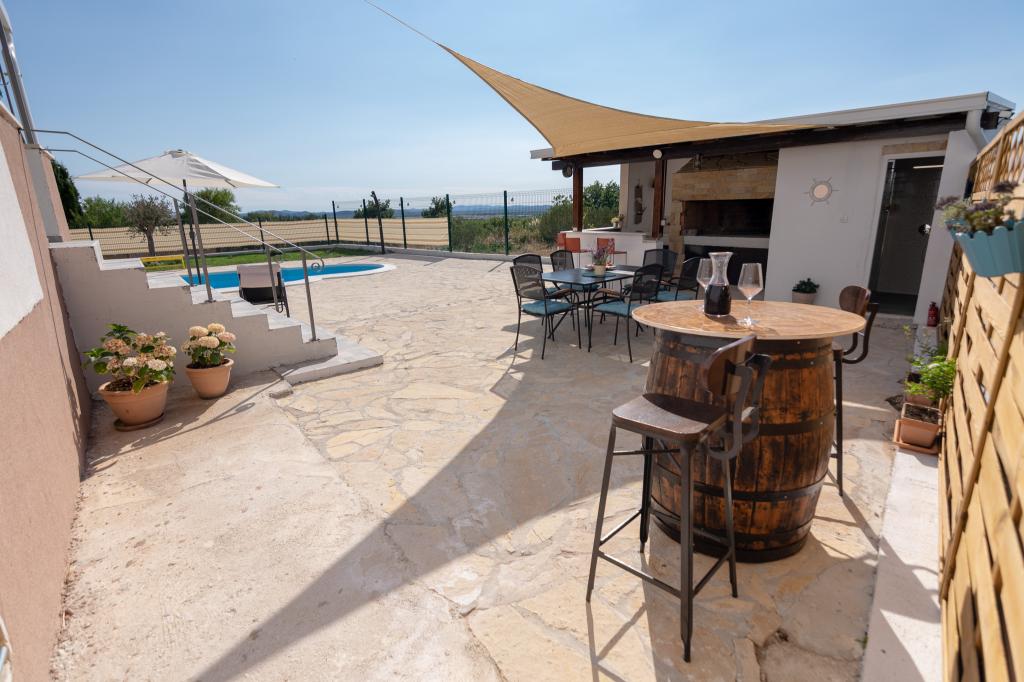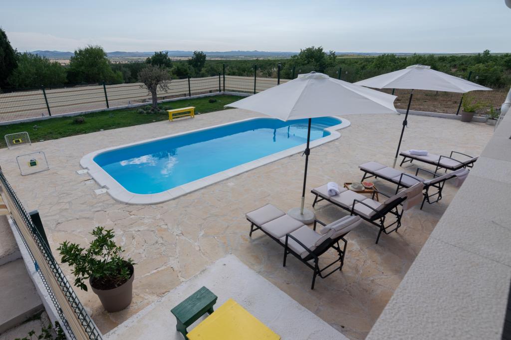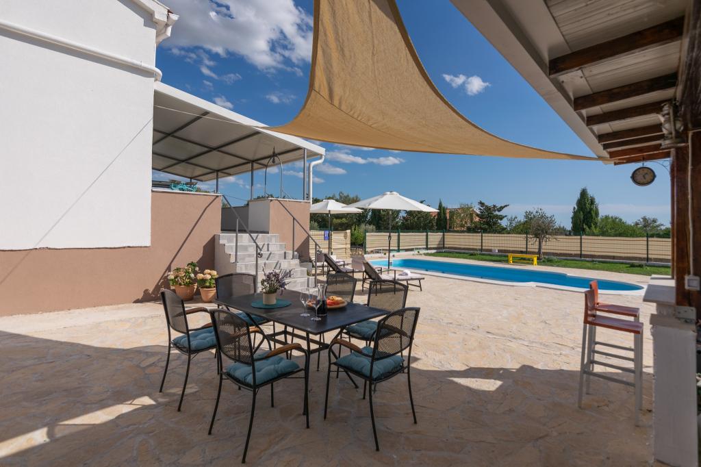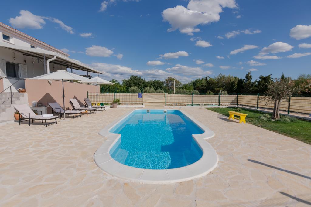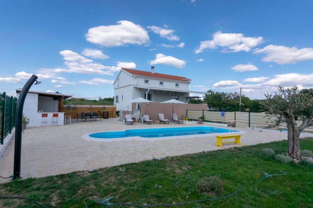 Vores fuldt udstyrede feriehus tilbyder al nødvendig komfort og privatliv, beliggende kun 20 minutter fra Zadar, hvor der er smukke strande og interessante kulturelle attraktioner. Det ligger i fredelige omgivelser i byen Nadin, kendt for sin vin- og olivendyrkning. En stor opvarmet swimmingpool, pejs og terrasse sørger for forfriskning og afslapning. Kun 1-2 timers kørsel væk er der fire nationalparker og to naturparker. Hvis du vil nyde duftene og lydene af uberørt natur, er dette feriehus det ideelle valg for dig. Freden og roen i den landlige landsby, sammen med det uundværlige udbud af lokale vine og olivenolier af høj kvalitet, giver vores gæster den nødvendige hvile...