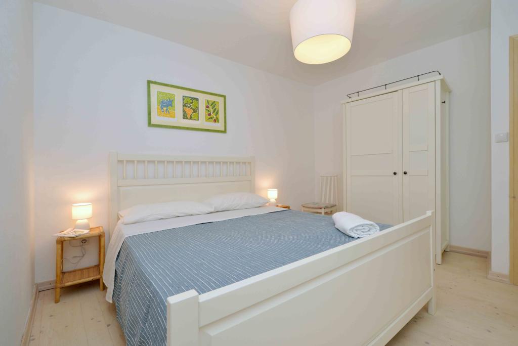 Dette smukke traditionelle dalmatiske stenhus ligger i den gamle del af Betina på øen Murter. Huset består af et køkken, en stor stue og et badeværelse i stueetagen, et andet badeværelse med tre soveværelser ligger på første sal. En stor terrasse med havemøbler er placeret på første sal. Køkkenet er fuldt udstyret. Parkering er cirka 150 meter fra huset og er inkluderet i lejlighedsprisen. Rengøring af lejligheden koster et ekstra gebyr på 100 euro (engangsgebyr).