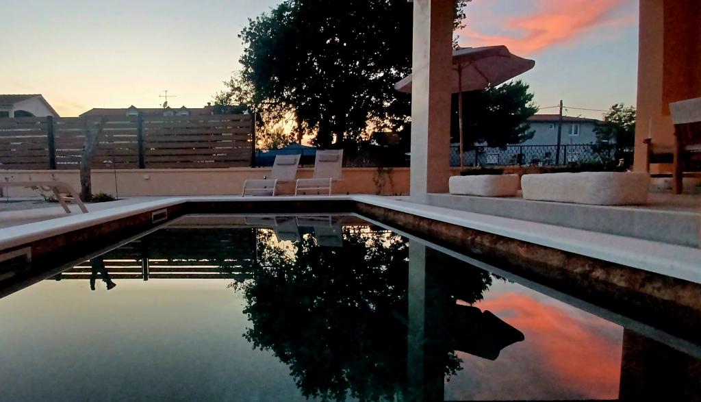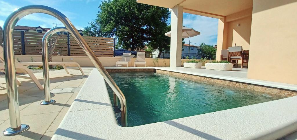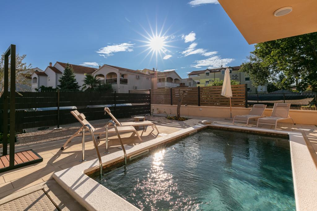 Moderne udstyret og charmerende villa med swimmingpool beliggende i en rolig del af Biograd na Moru er ideel til en afslappende ferie. Det elegant indrettede interiør tilbyder alt hvad du behøver for et behageligt ophold, mens den rummelige have med privat pool og solbadningsområde garanterer perfekt nydelse i middelhavssolen. Nyd kombinationen af komfort, stil og nærhed til havet i denne smukke villa. Hvis du leder efter en fredelig, afslappende og komfortabel oase til din ferie, er dette det ideelle sted og hus, der foretrækker denne type ferie.