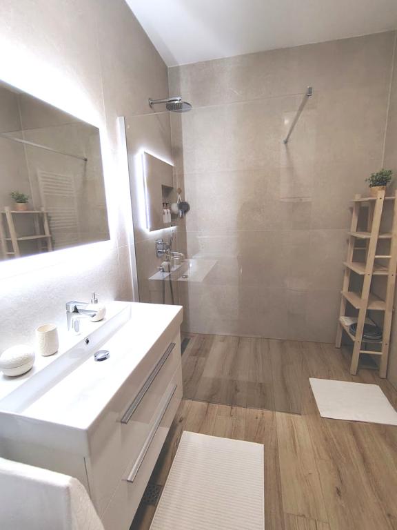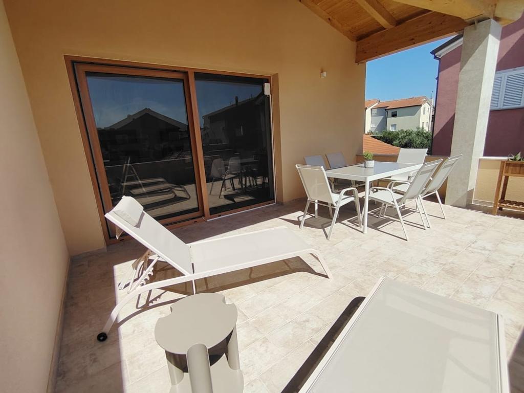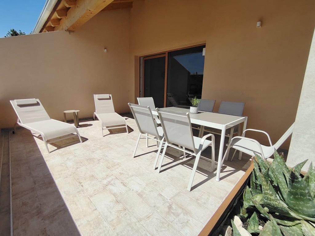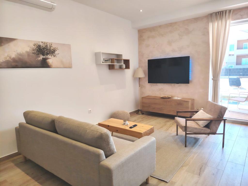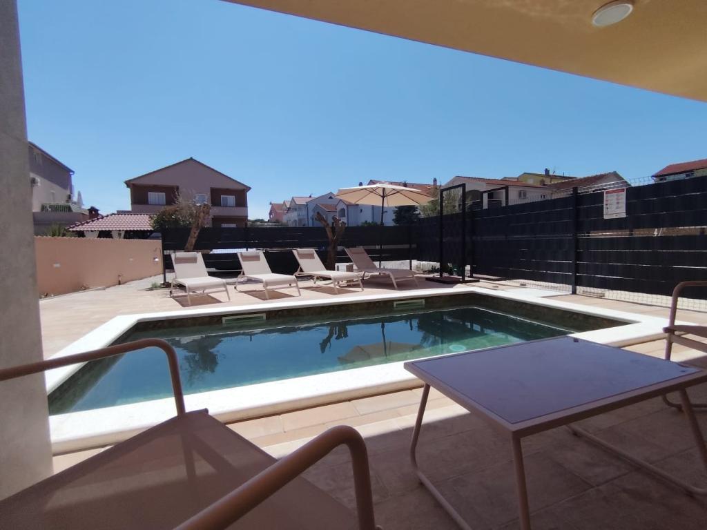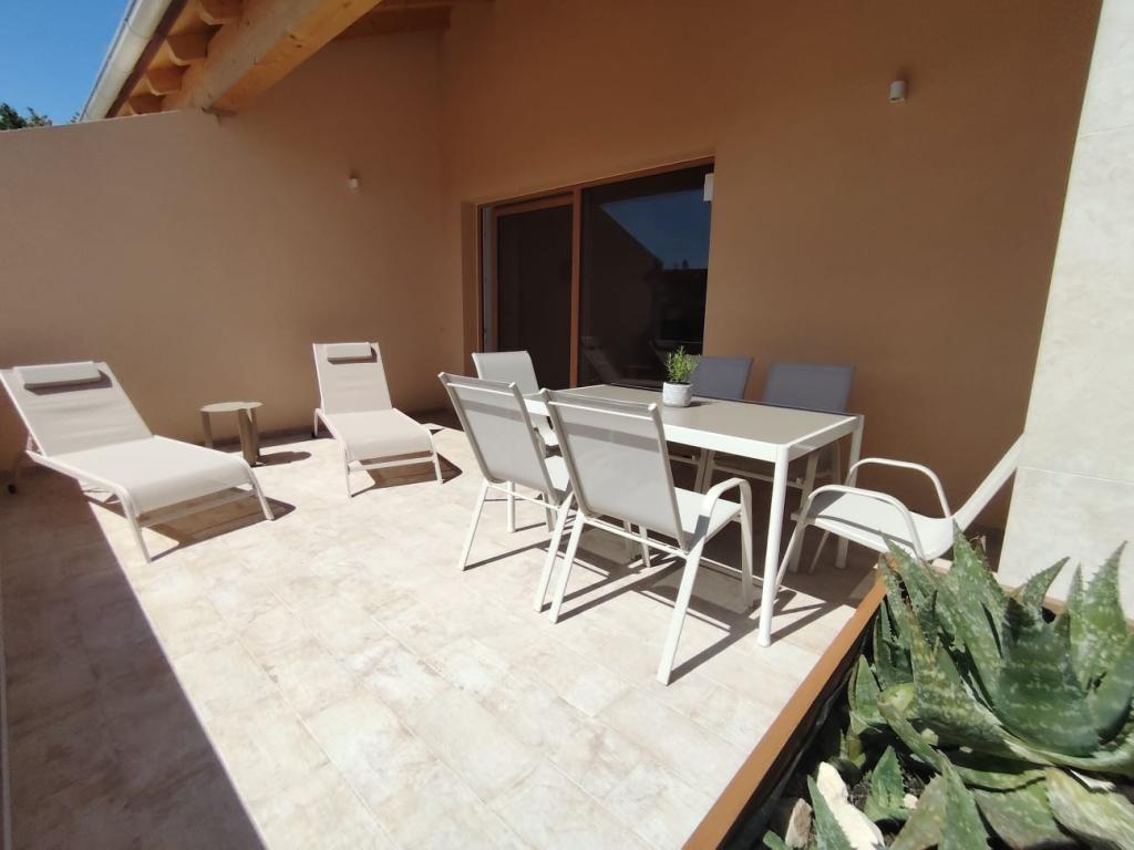 Nybygget toetagers feriehus med swimmingpool og to separate boligenheder (stueetage og første sal). Hver boligenhed er 95 kvadratmeter stor og er udstyret med 3 soveværelser, køkken, badeværelse, terrasse og stue. Parkering er til rådighed.