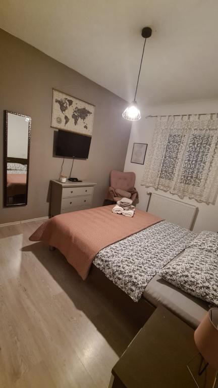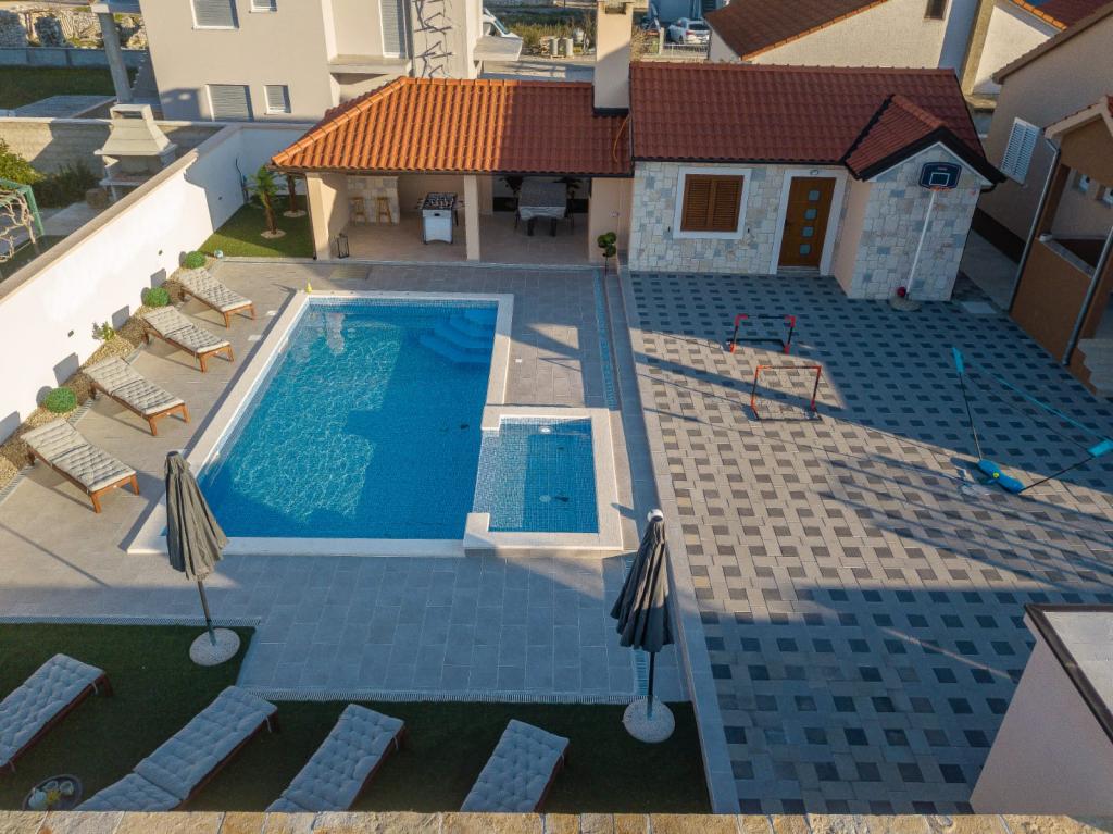 En moderne villa med swimmingpool, 3 km fra byens centrum. Anlægget har en 8x4 meter swimmingpool og en 3x1,5 meter børnepool. Rigt indhold til børn, bordfodbold, billard, bordtennis, rutsjebane, trampolin...