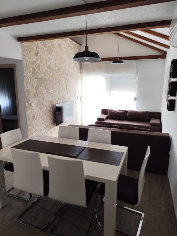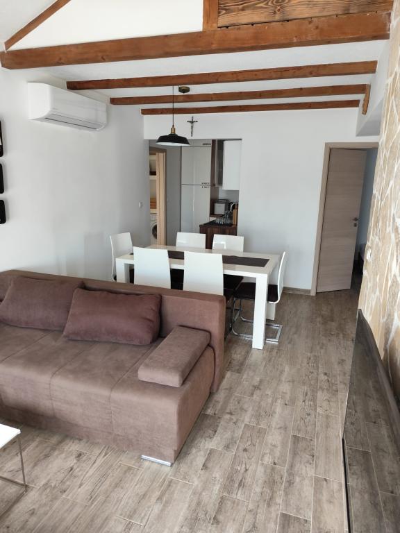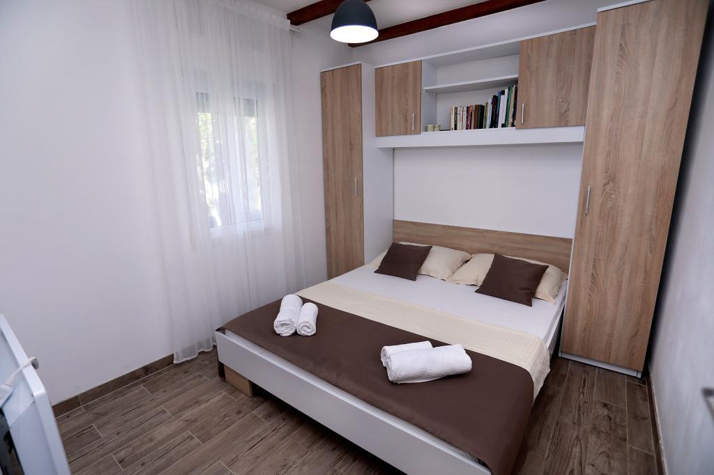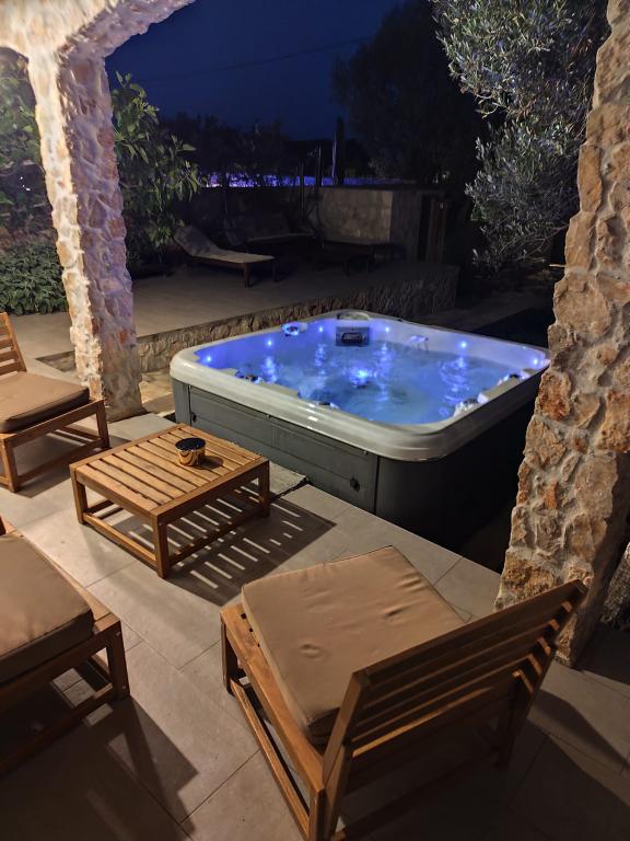 Smukt, naturligt og fredeligt sted. Hus med jacuzzi til leje på Drvenik Mali, cirka 150 meter fra havet. Huset består af to soveværelser, en stue med køkken og spisestue samt et badeværelse. Den smukkeste del af huset er terrassen med en åben pejs og stengrill. Drvenik Mali er omgivet af Adriaterhavets klare vand, en ø nær byen Trogir og byen Split. Den er forbundet med en lille færge, der sejler fire gange om dagen i sæsonen. Drvenik Mali er en meget fredelig ø, så meget fred, enestående naturskønhed og usædvanligt klart hav. Dette er den perfekte feriedestination "langt fra byens mylder" og er en sand udfordring for alle moderne Robinsons. Hvis du leder efter frodig middelhavsvegetation, en original atmosfære og en autentisk ø-atmosfære, er Drvenik Mali det rigtige valg for dig.