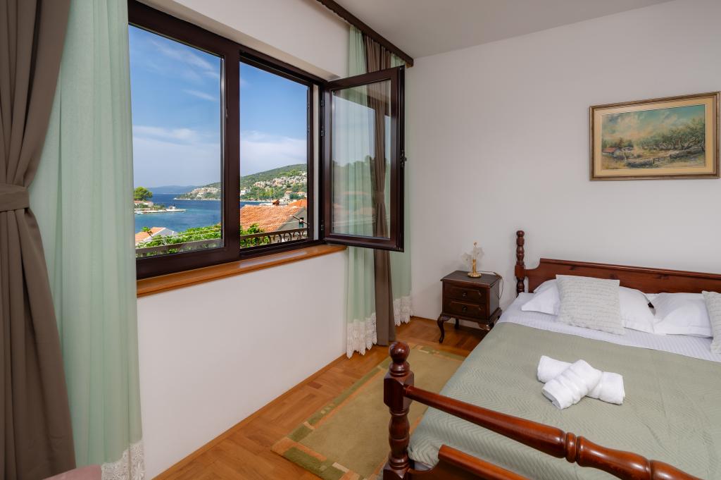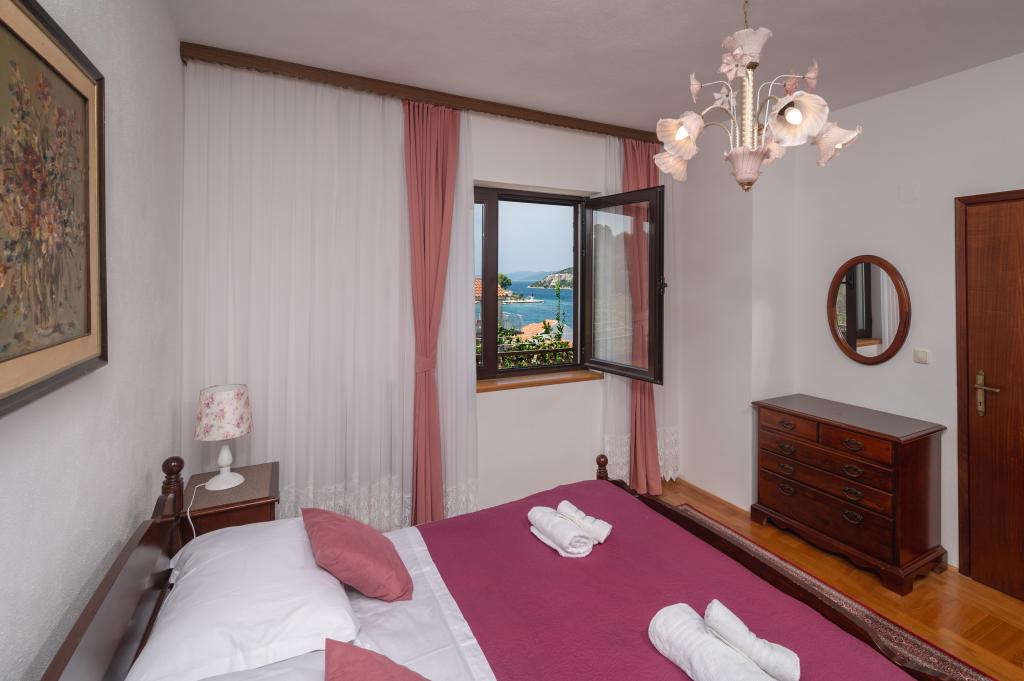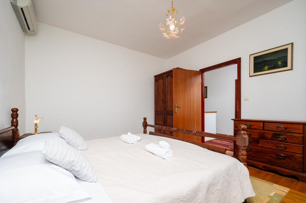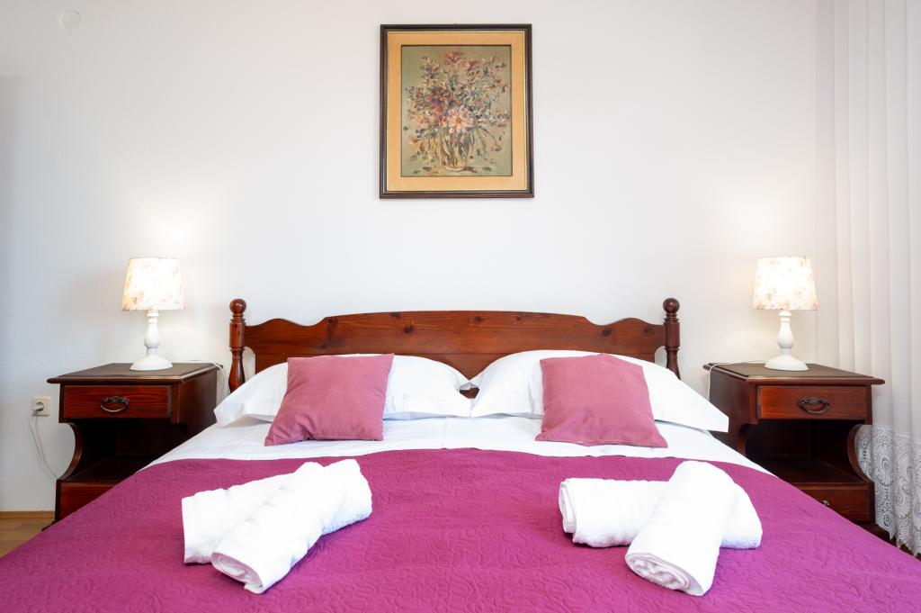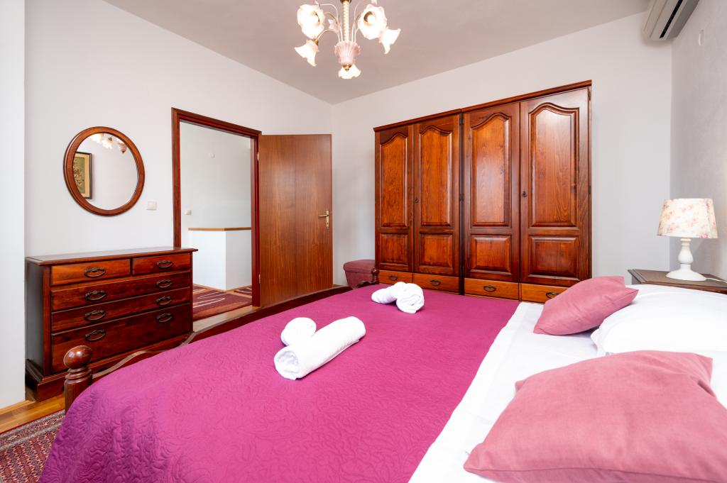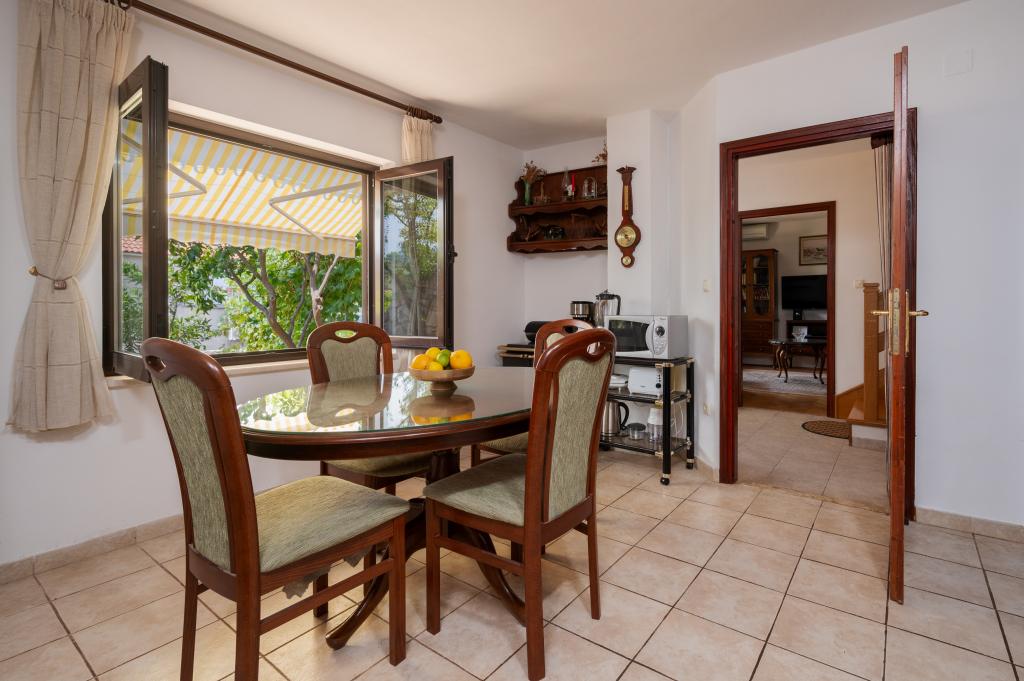 Feriehuset Ines ligger i hjertet af den maleriske by Drvenik Veliki - en fredelig ø nær Trogir og Split Lufthavn, som den er forbundet med med en regelmæssig færgeforbindelse. Dette charmerende hus tilbyder fuldstændig fred og privatliv takket være de høje mure, der omgiver det, og haven byder på en smuk udsigt over bugten. Det er ideelt for alle, der søger en flugt fra hverdagen og ønsker at nyde stilheden, solen og havbrisen. Den rummelige have er designet til let rekreation og afslapning - perfekt til morgenkaffe, eftermiddagssolbadning eller aftenhygge under stjernerne. Den nærmeste anlagte betonstrand ligger lige ved siden af huset, mens naturlige skønheder som den berømte "Blå Lagune" kan udforskes på anlagte veje, der er egnede til cykling eller bilkørsel. Øen Drvenik Veli udstråler en autentisk middelhavsatmosfære, ren luft og uberørt natur, uden folkemængder og stress - det perfekte sted at genoplade batterierne.