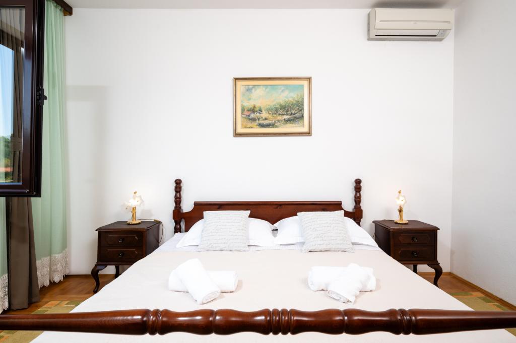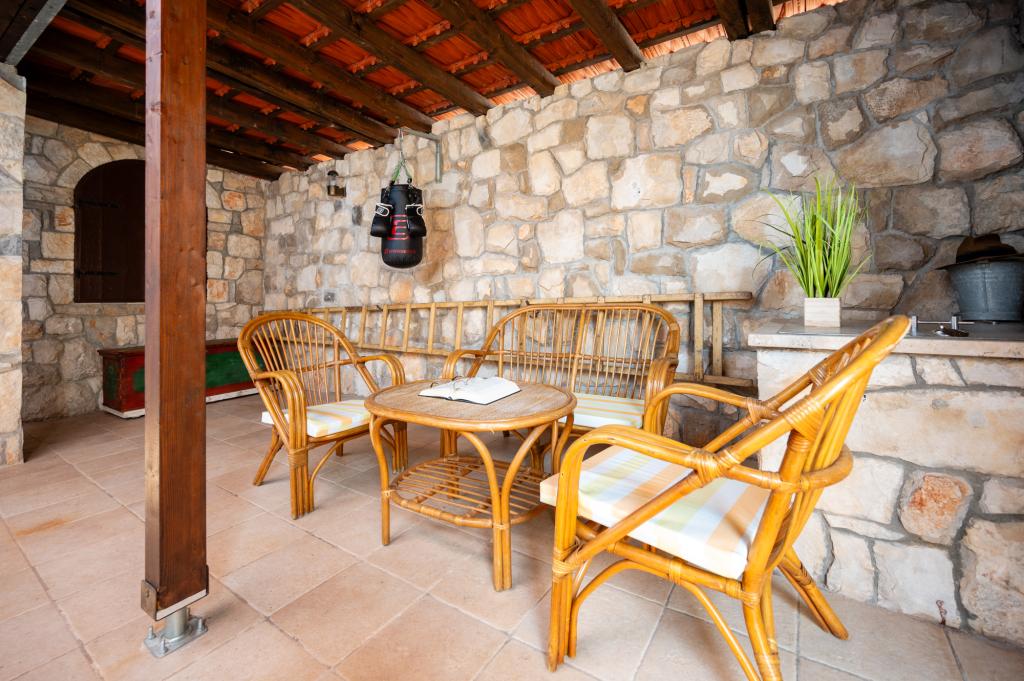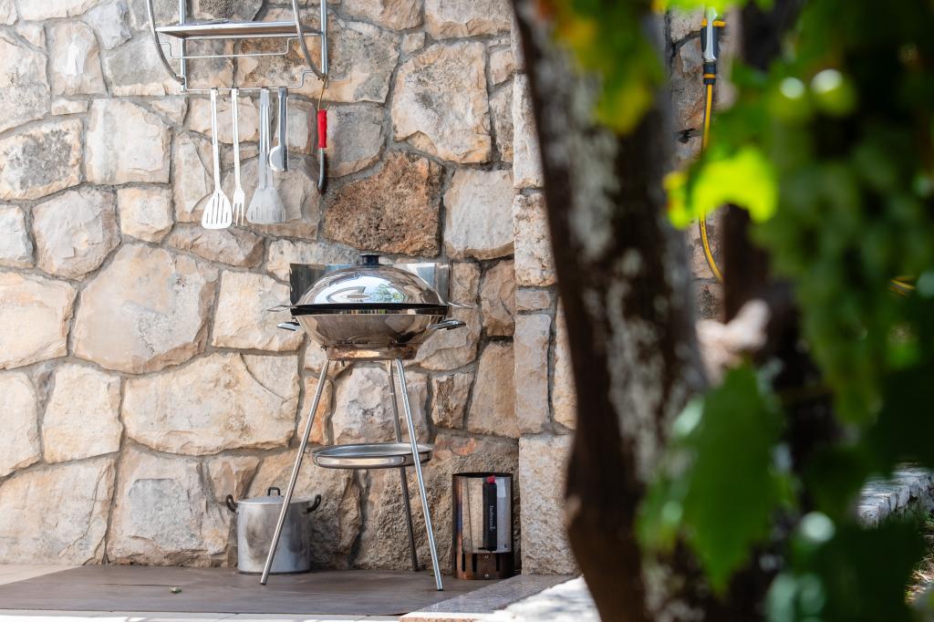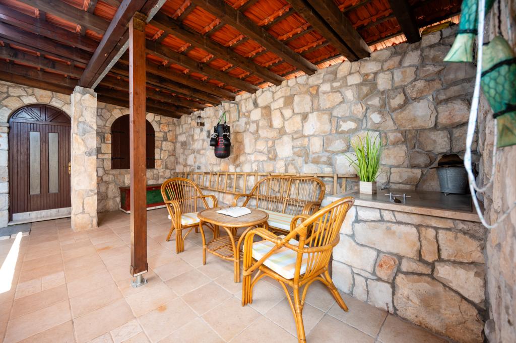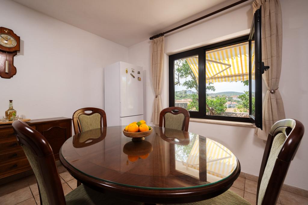 Terrasse og have med smuk udsigt. Ines og Damir er meget rare mennesker og fremragende værter. Huset er usædvanligt veludstyret og smagfuldt og kærligt indrettet. Komfortable senge. Alt er skinnende rent og pænt. Et minuts gang til havnen og stranden med krystalklart hav. Stedet har en butik, bageri, pizzeria, taverna. Der er taverner og et par strandbarer på Krknjaṣi. Et perfekt sted at genoplade batterierne, langt fra masseturisme, støj, forurening...