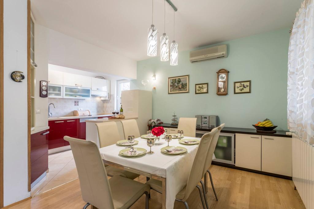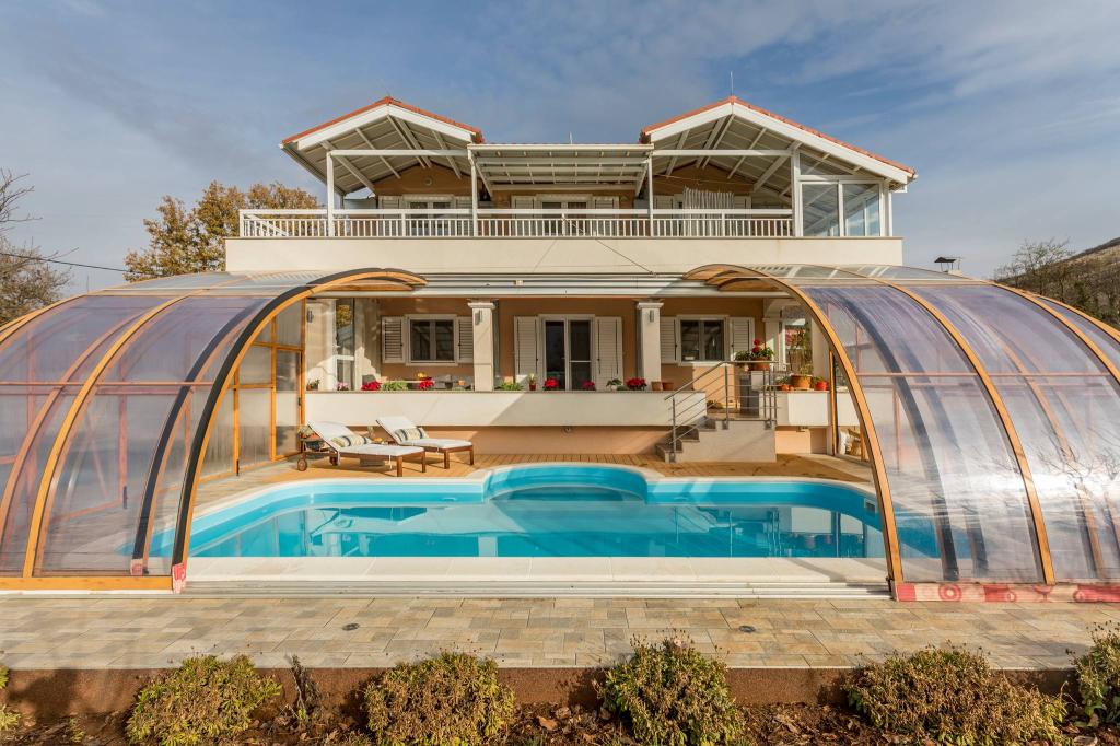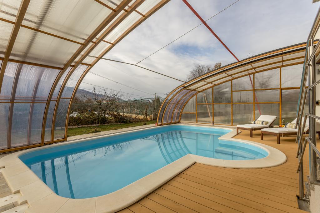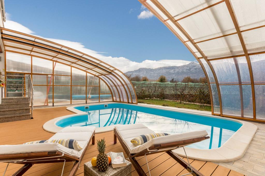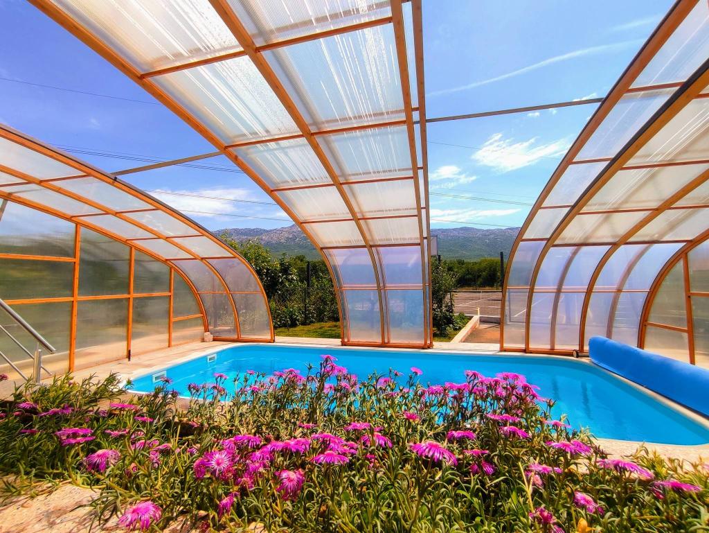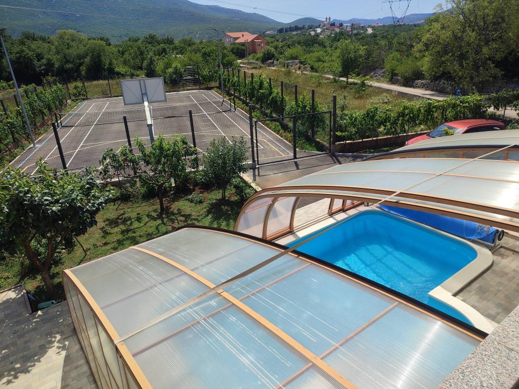Nyd en fredelig ferie i et rummeligt hus beliggende i Dugopolje, ideelt for familier, par eller vennegrupper. Ejendommen tilbyder en privat swimmingpool, en stor tennisbane med basketballkurv og en unik udsigt over bjergene, der skaber den perfekte atmosfære til afslapning. Huset er fuldt udstyret til et behageligt ophold: et moderne køkken, en komfortabel stue, soveværelser med aircondition og en rummelig have, der indbyder til socialt samvær.