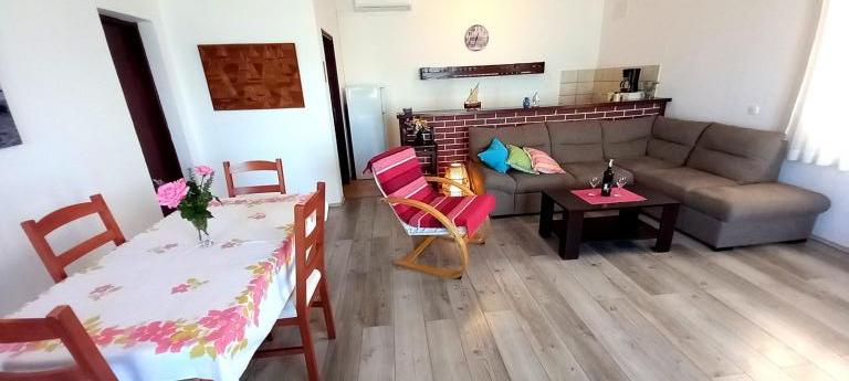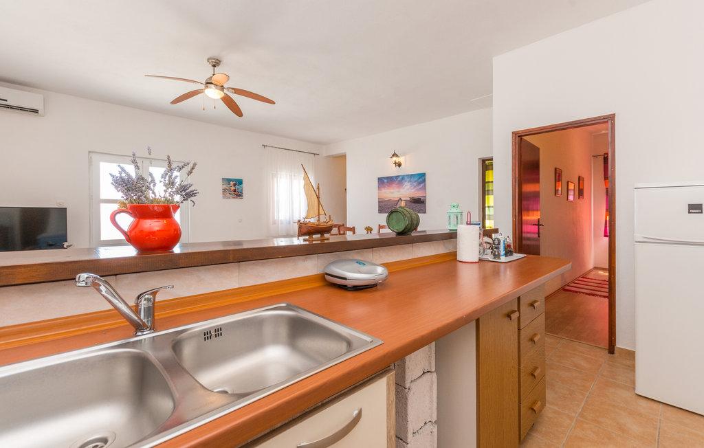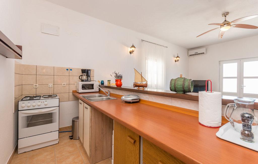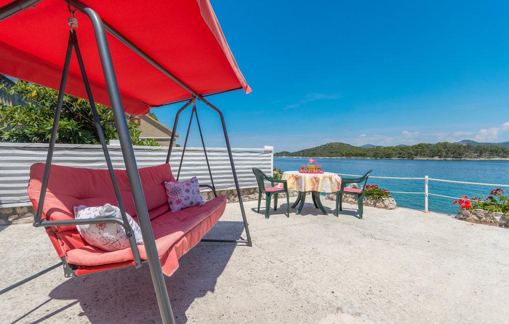 En rummelig terrasse med komfortable liggestole og parasoller, der tilbyder en smuk udsigt over havet, er en fremragende invitation til at tilbringe din ferie her. Slap af med din familie i denne behagelige indkvartering. Mali Iž, i den midterste kanal mellem Ugljan og Dugi Otok, er omgivet af andre småøer. Færge- og bådruter giver hurtig ankomst. Restauranterne serverer gode lokale vine og lækker dalmatisk køkken. Feriehuset består af et rummeligt fællesområde, stue, køkken og spisestue - åbent rum, to soveværelser og et badeværelse. Det ene soveværelse har en dobbeltseng, der måler 160×200 cm, og det andet soveværelse har en køjeseng, der måler 90×200 cm. Huset har en rummelig terrasse med havudsigt 10 meter fra havet. Der er en pejs med grill ved siden af huset. Der er gratis parkering på et offentligt område i nærheden af indkvarteringen.