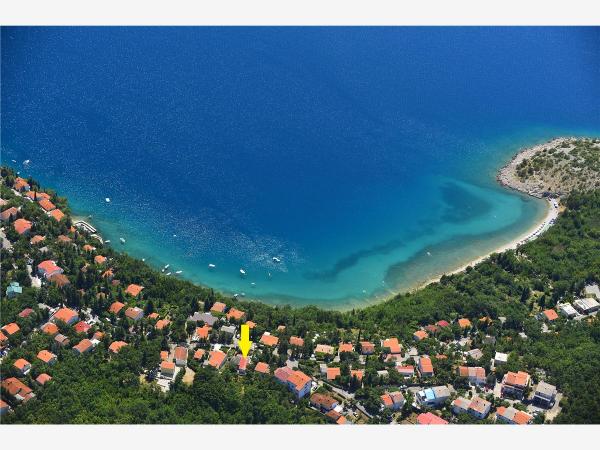 Fuldt møbleret sommerhus på 50 m2 med en have på 240 m2, sikret parkering til 2 køretøjer, kun 70 m fra den naturlige stenstrand med udsigt over øen Krk. Beliggende i et roligt miljø, der er egnet til perfekt hvile og afslapning, består det af et soveværelse, en rummelig spisestue og et separat køkken og en stor stue og to terrasser omgivet af grønne omgivelser.