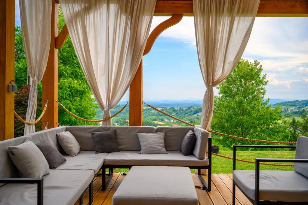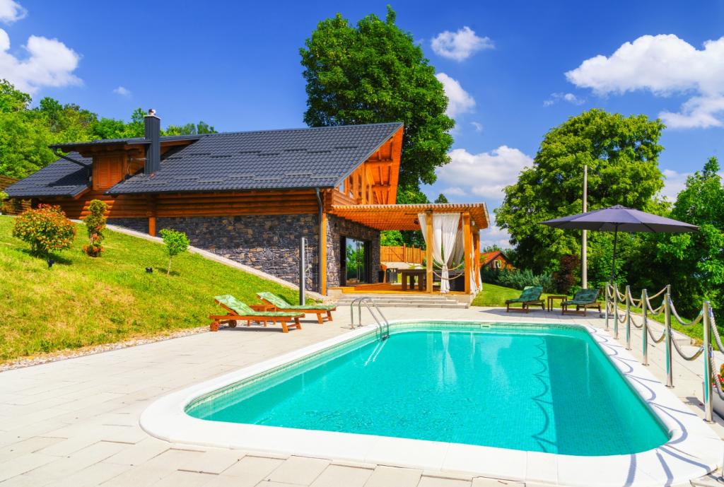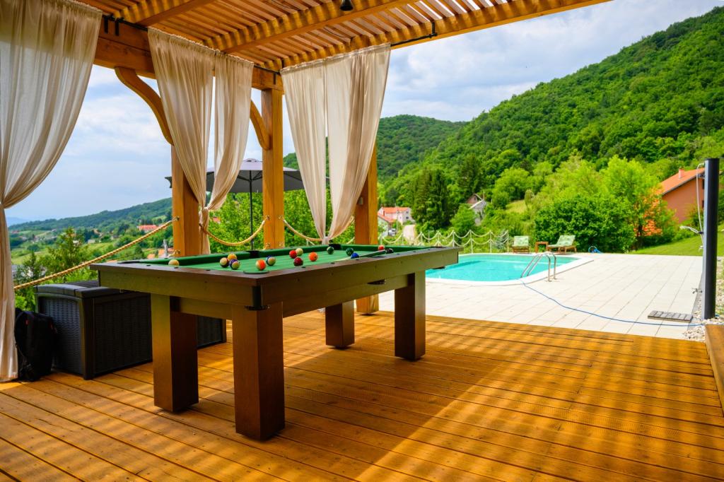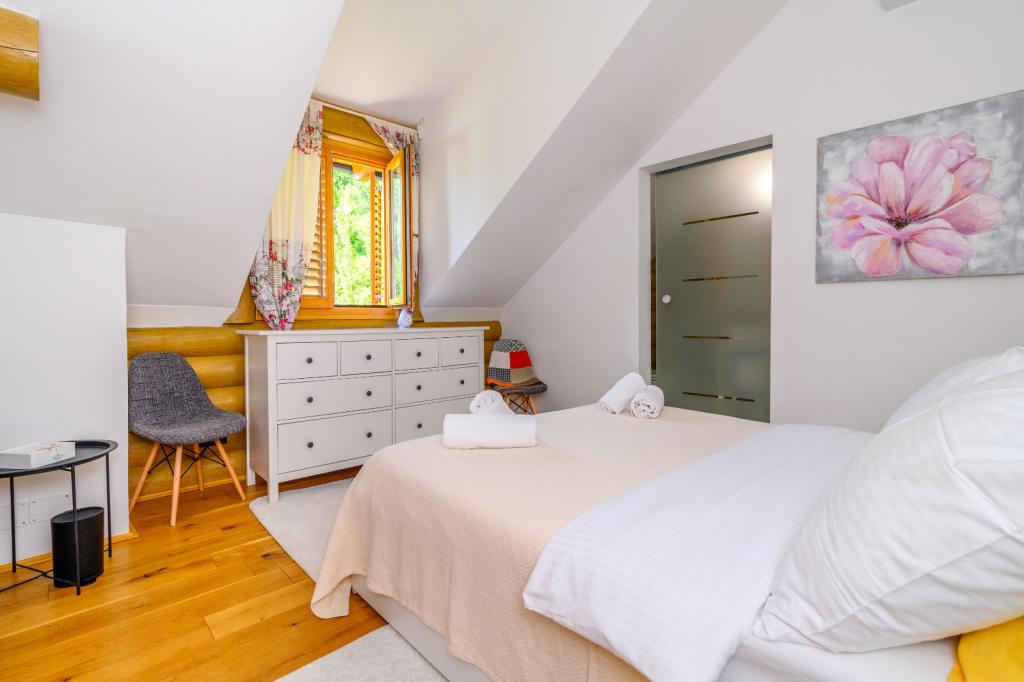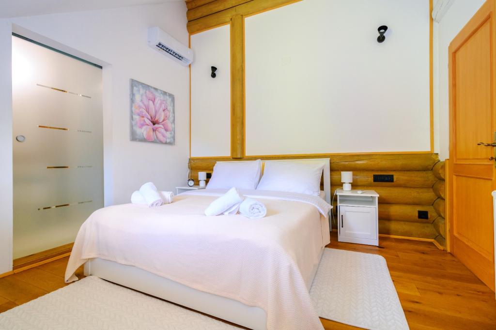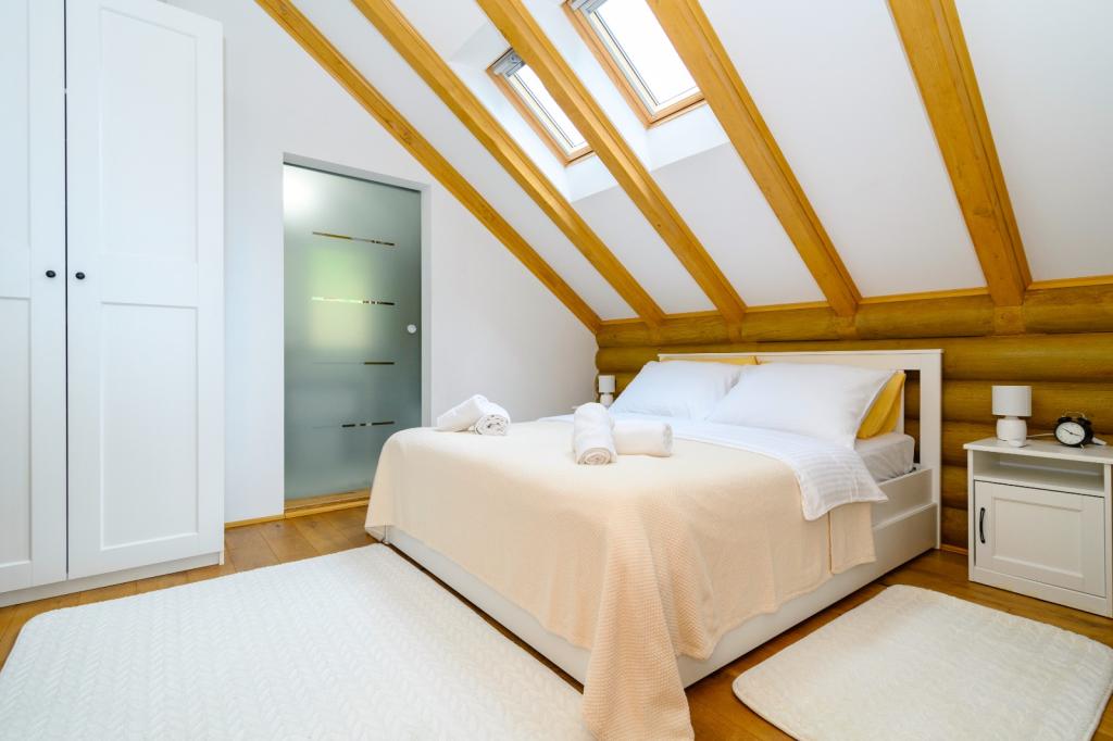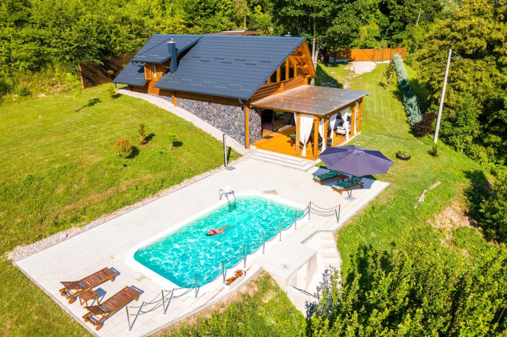 Ikke langt fra Zagreb, kun 44 km væk og 350 meter over havets overflade, ved foden af Japetić-bjergene, ligger træhuset Wellspring i Sveta Jana (Gorica Svetojanska). En del af grunden (på i alt 2.700 m2) er inkluderet i det beskyttede område i naturparken Žumberak og er som sådan et særligt inspirerende sted for ferie. Der er flere naturlige drikkevandskilder i selve landsbyen, og den første større landsby Jastrebarski ligger 9 km væk. Træhuset Wellspring består af to etager med gratis wi-fi. På nederste etage er der en åben opholdsstue med pejs, en veludstyret spisestue og køkken, et soveværelse, et spa-område med en finsk sauna og jacuzzi, et brusekabine og et toilet. På øverste etage er der to soveværelser med eget badeværelse og plads på galleriet til hvile/læsning. Udover pejsen var der også centralvarme til de kolde vintermåneder, samt gulvvarme i spa-afdelingen. Den overdækkede terrasse med udsigt mod syd er på 40 m2 og en opvarmet swimmingpool med solseng, bruser og liggestole.