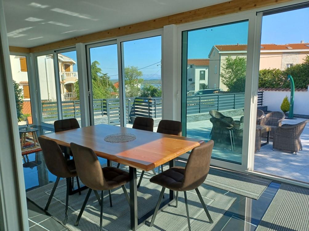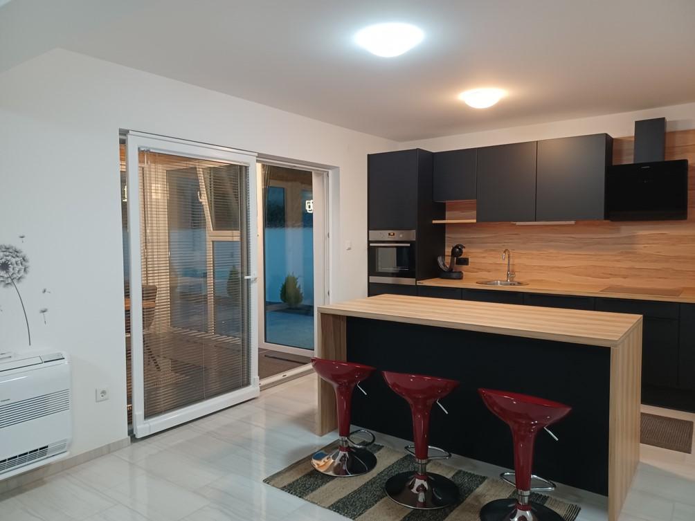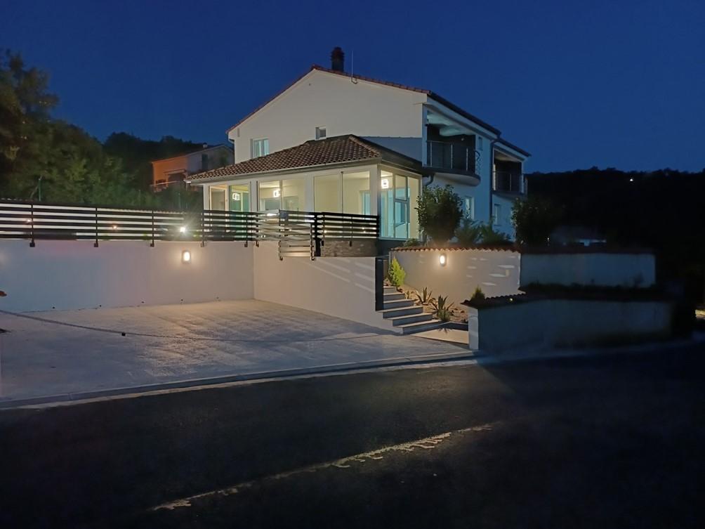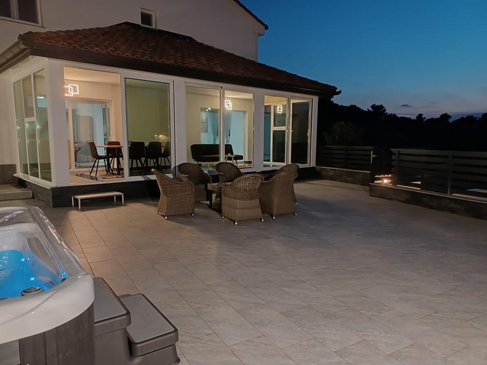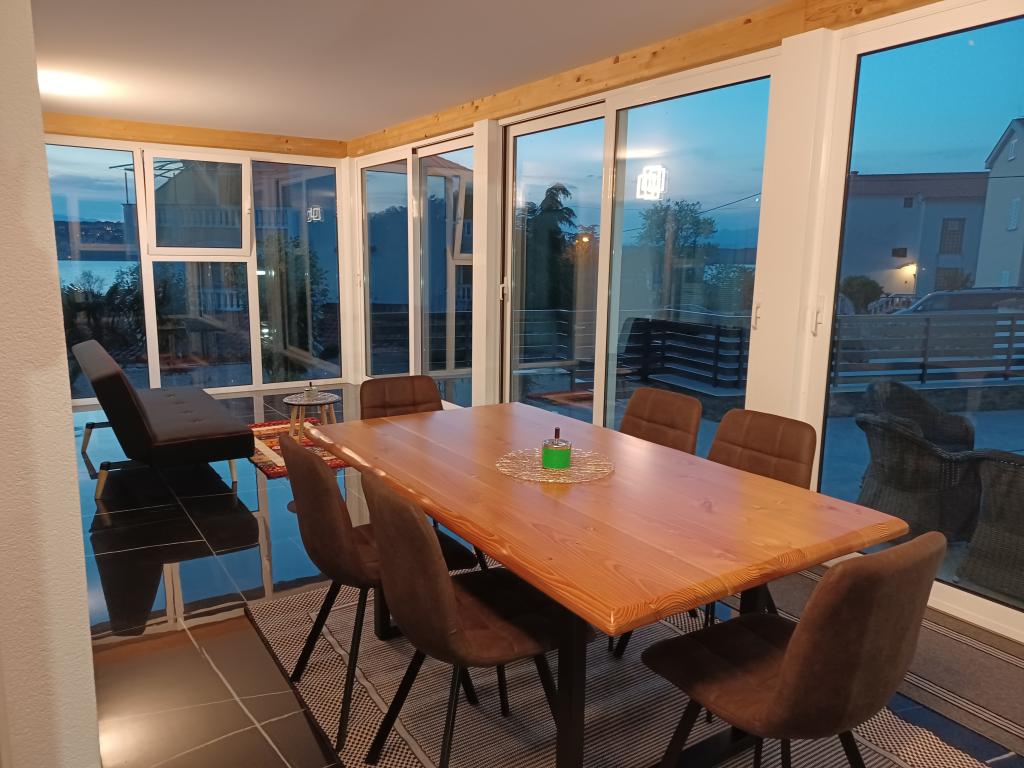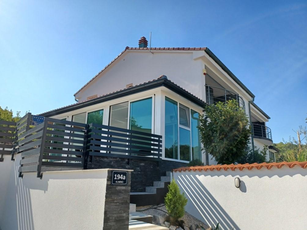 Feriehuset ligger i Klimno, på den østlige side af øen Krk, kun 10 minutters kørsel fra Krk-broen. Med sin gamle turisttradition er Klimno kendt for sit rige cateringudbud i restauranter, der tilbyder fisk og skaldyr og andre specialiteter med den obligatoriske autoktone vin, lejligheder og private villaer. 100 meter fra stranden i den rolige by Klimno på øen Krk ligger et luksus 5* hus på 200 m2 med stor hydromassagepool til 6 personer, solterrasse og have. Hvis du ønsker at nyde en ferie i år i fuldstændig privatliv med et strejf af luksus og tæt på havet, så vælg dette feriehus, der har alt hvad du behøver for et behageligt og ubekymret ophold. Ovenpå er der 3 dobbeltværelser med eget badeværelse, fjernsyn, og hvert værelse har adgang til en balkon. Du kan starte din morgen med udsigt over den solbeskinnede bugt. I stueetagen er der et moderne udstyret køkken og en stue, der åbner ud til en smuk overdækket glasterrasse og uderum.