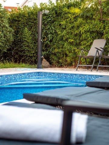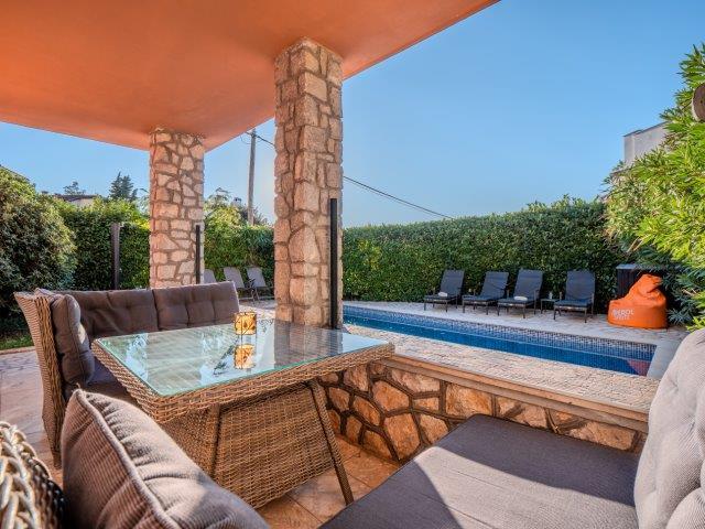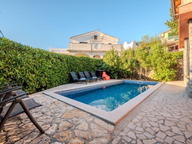 Fuldt møbleret villa med swimmingpool nær centrum af Malinska - øen Krk. centrum og alle faciliteter er få hundrede meter væk. restauranter er i nærheden. overdækket parkering i gården. klimaanlæg og pilleovn. Ideel til ferie. Fred og et behageligt ophold.
