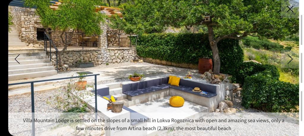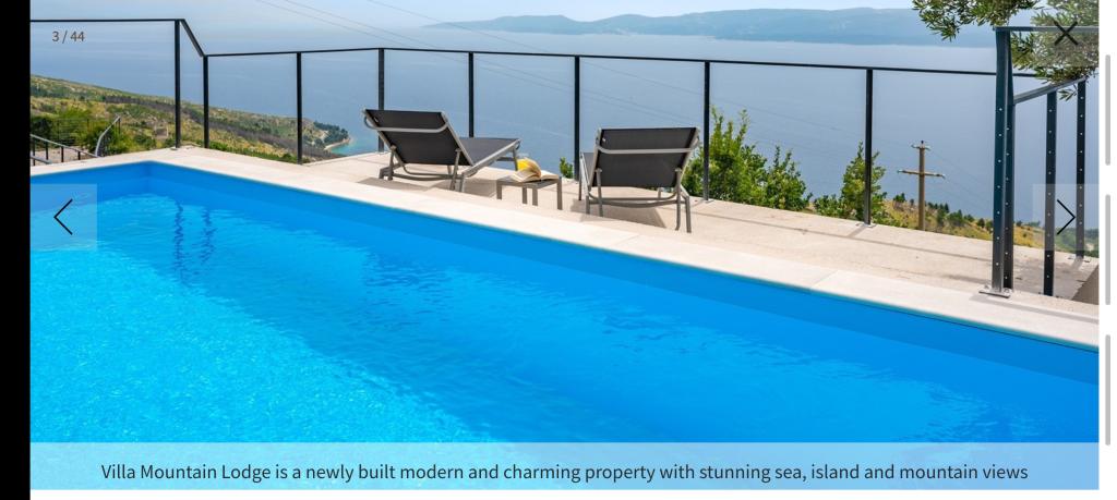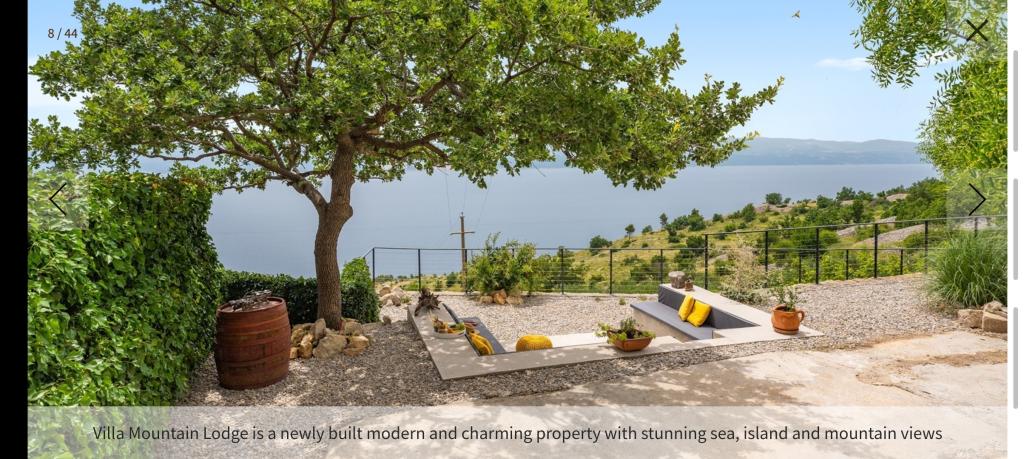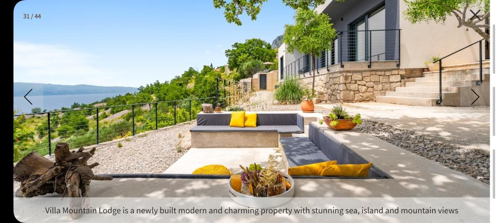 Villa Mountain Lodge er en nyrenoveret, moderne villa med 4 soveværelser og panoramaudsigt over havet og øerne samt bjergene. I den 900 m2 store have kan I nyde middelhavsplanter, en opvarmet swimmingpool på 7,5 x 3 m, som er placeret på børnelegepladsen. Som en del af alt dette er der et siddeområde, hvor I kan nyde jeres første morgenkaffe i skyggen af et træ. Der er en grill i nærheden af køkkenet samt et stenbord, hvor I kan nyde socialt samvær og fred. Villaen ligger kun 8 km fra den charmerende by Omiš, 40 minutter fra Makarska og Split, 2,3 km fra den smukke Artina-strand, 950 m fra en restaurant, 10 minutter fra en butik. En bil anbefales til denne beliggenhed.